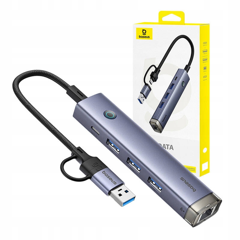Baseus Ultrajoy Adapter Hub 4W1 USB-A и USB-C до 3x USB 3.0 + USB-C + RJ45