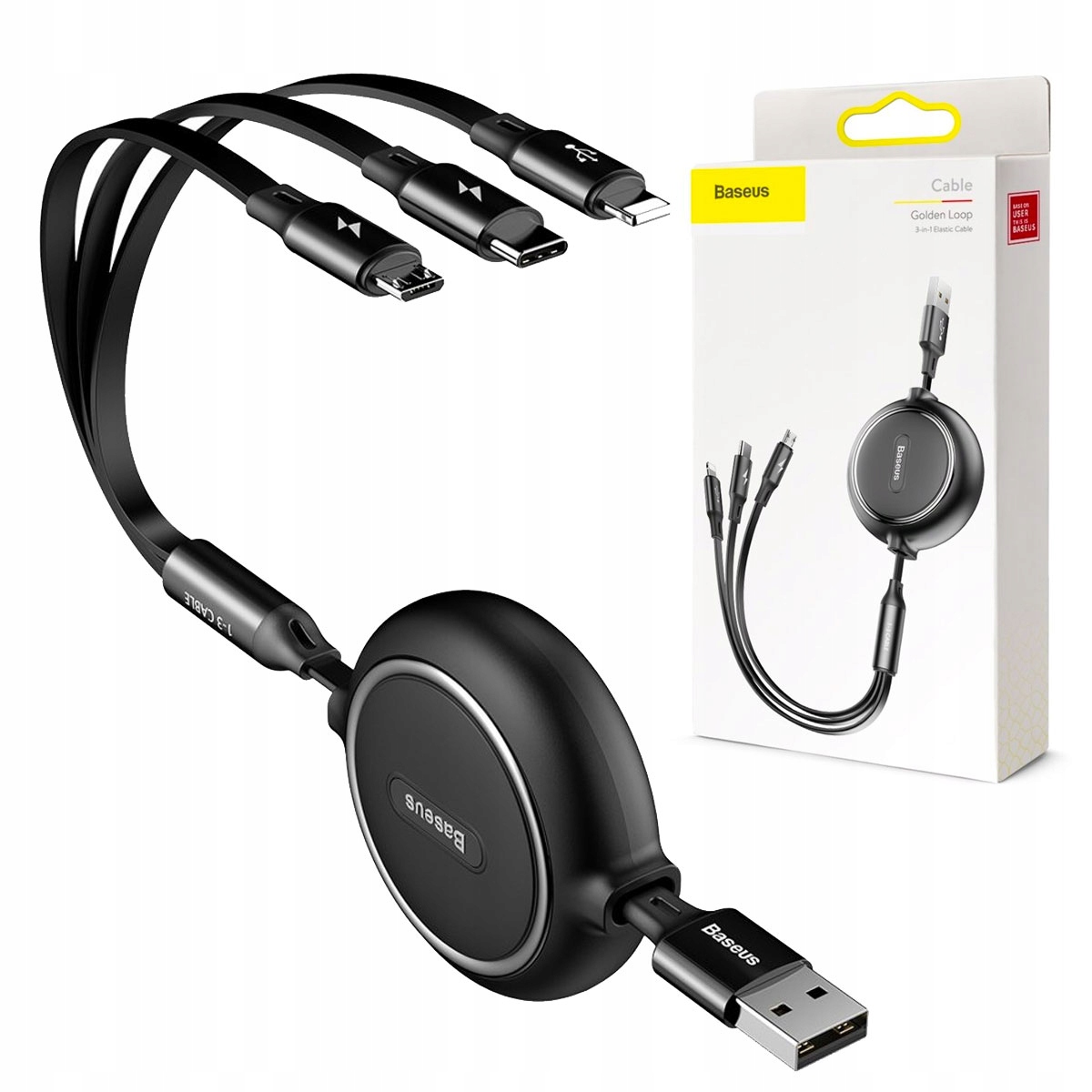 Выдвижной кабель Baseus Golden Loop 3 в 1 USB — micro USB/Lightning/USB-C 3,5 А, 35 см — 120 см