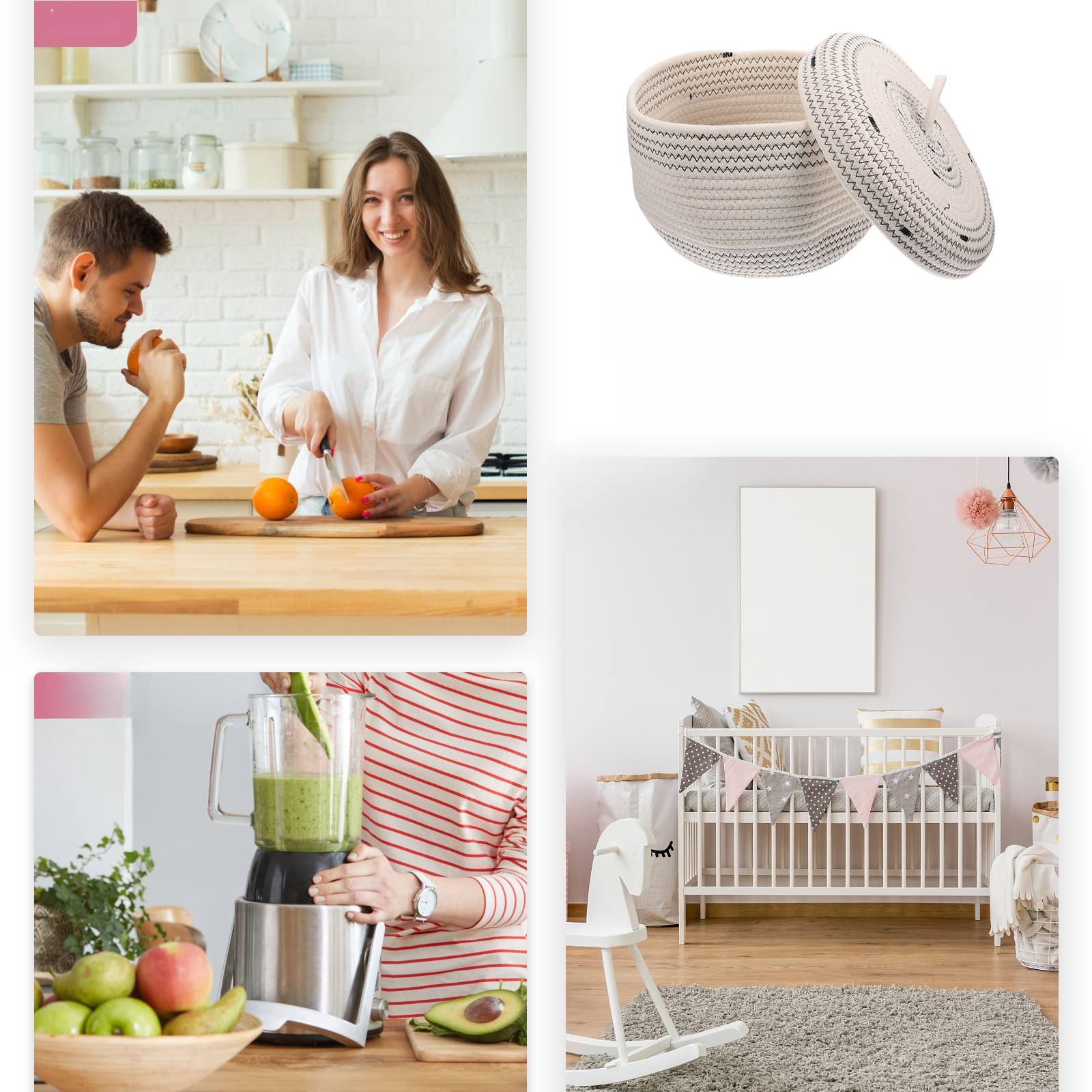 🌈 Идеальный материал: покрытая тканая корзина из натурального хлопкового материала, храните заказ дома благодаря нашей крытой хлопковой корзине. крышка