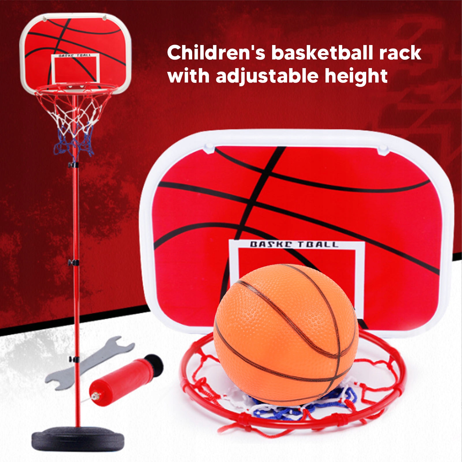 Баскетбольная стойка с регулируемой высотой, железный столб, красный VT