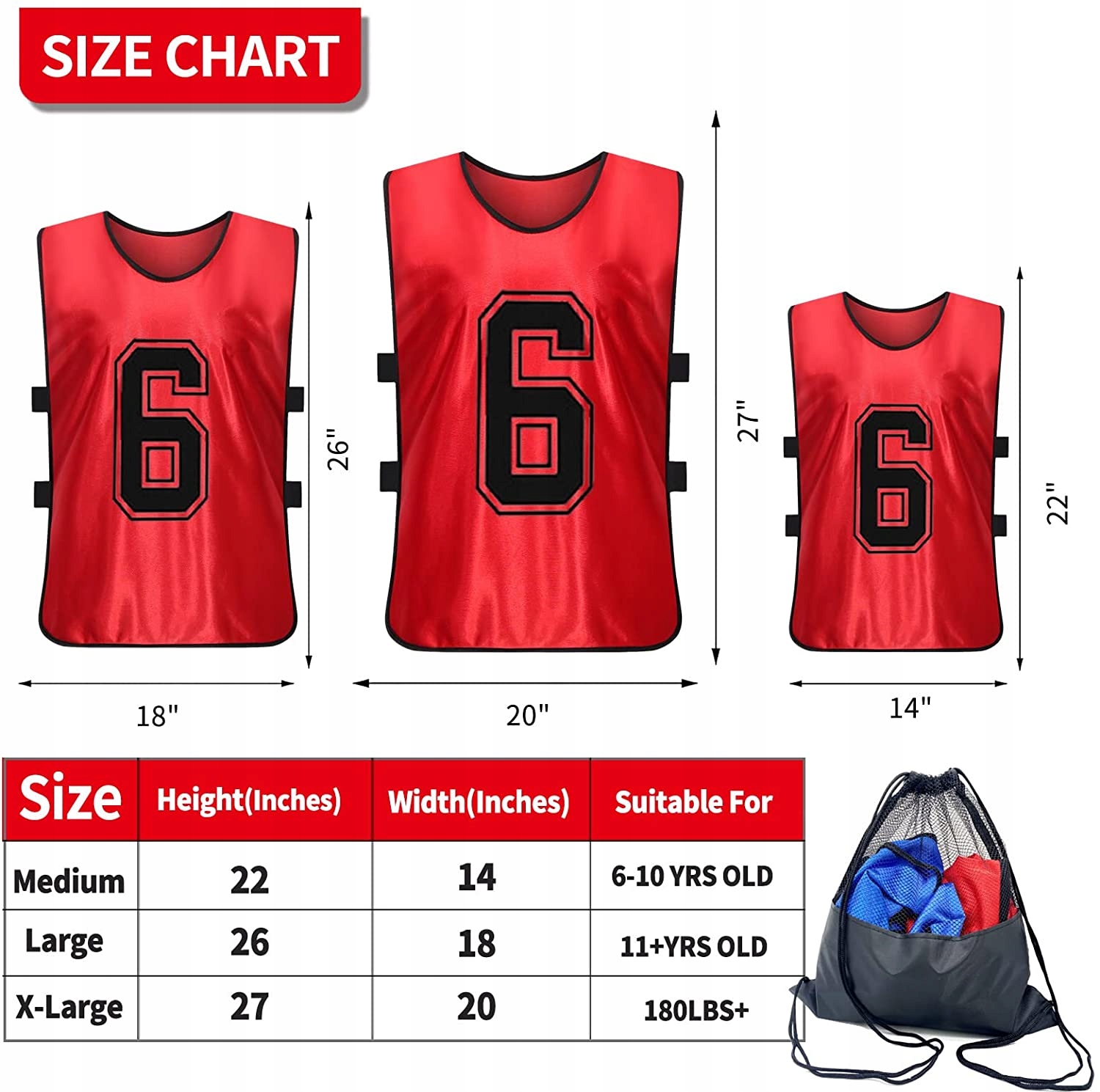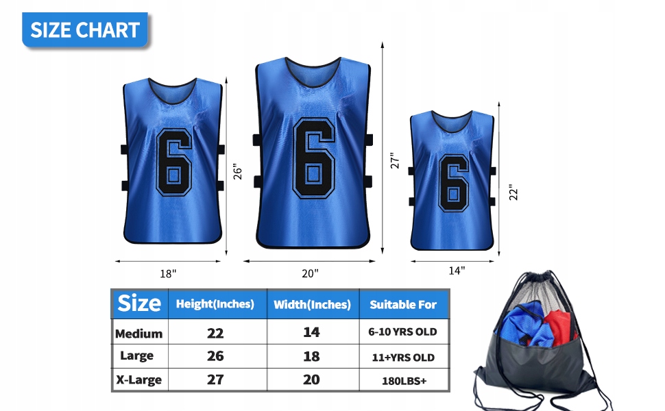 Разное использование: набор из 12 булавок/тренировочные нагрудники/спортивные жилеты/молодежные спортивные рубашки со свободной сумкой для удобной переноски. портативность. Идеально подходит для таких видов спорта, как баскетбол, футбол, футбол, волейбол и лакросс.