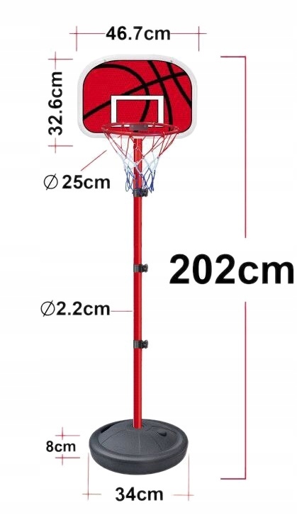 БАСКЕТБОЛЬНИЙ М'ЯЧ 202см РЕГУЛЬОВАНИЙ КОШИК НА МЕТАЛЕВІЙ ПІДСТАВЦІ МЕТАЛЕВИЙ ОБОД 5809