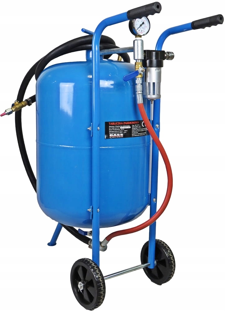 Пескоструйный аппарат оснащен резиновыми колесами и удобными ручками, облегчающими его перемещение и повышающими комфорт оператора.