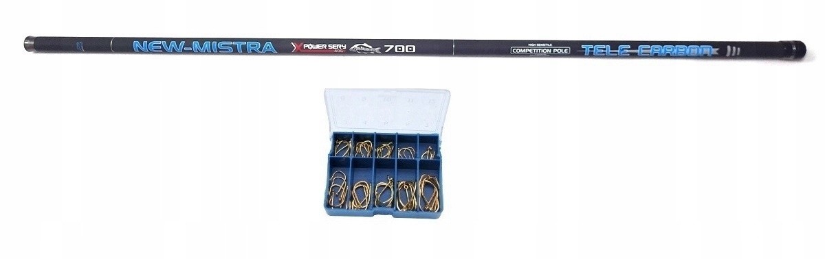 Удилище для летучей мыши 7 м ACTION 40 г CARBON NEW-MISTRA + КОРОБКА КРЮЧКОВ