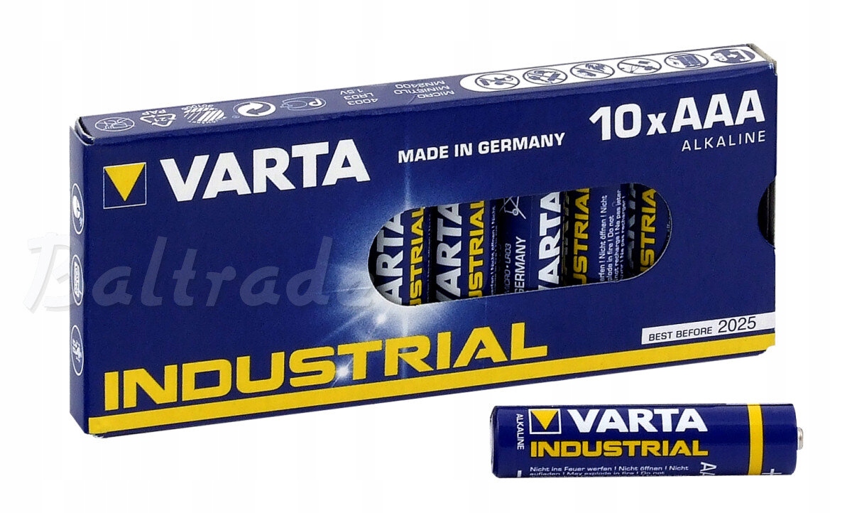 ХАРАКТЕРИСТИКИ ПРОДУКТА Щелочные батарейки Varta Industrial LR03/AAA 10х2 (20 шт.)