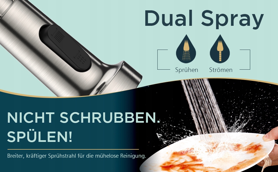 Смеситель для кухни вращается на 360° и позволяет разнообразные движения внутри и вокруг раковины.