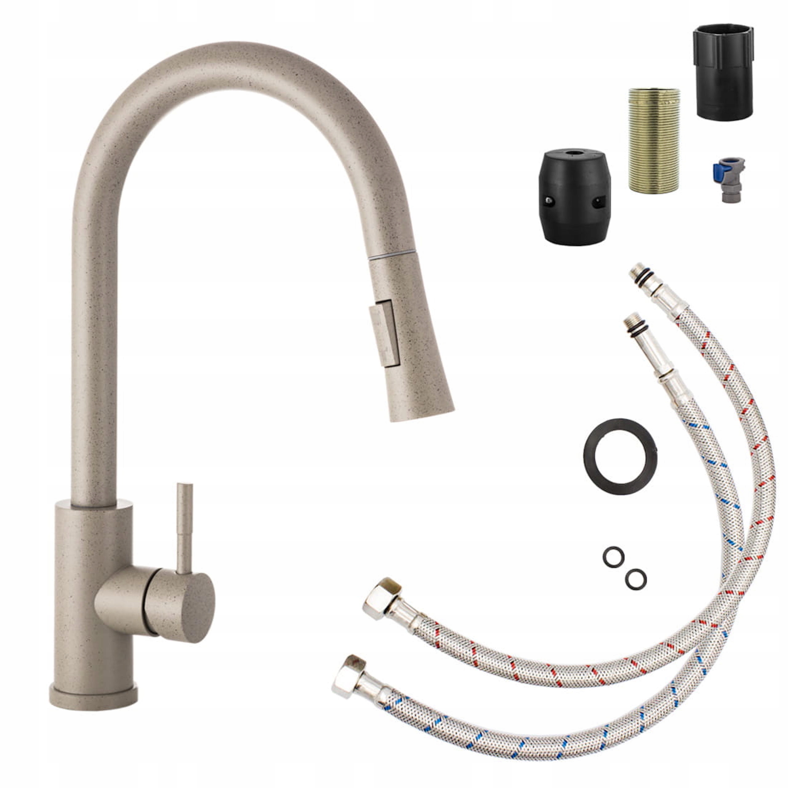 Bateria Kuchenna Taru Slim Beżowa Granit z Wyciąganą Wylewką Kran Kuchenny