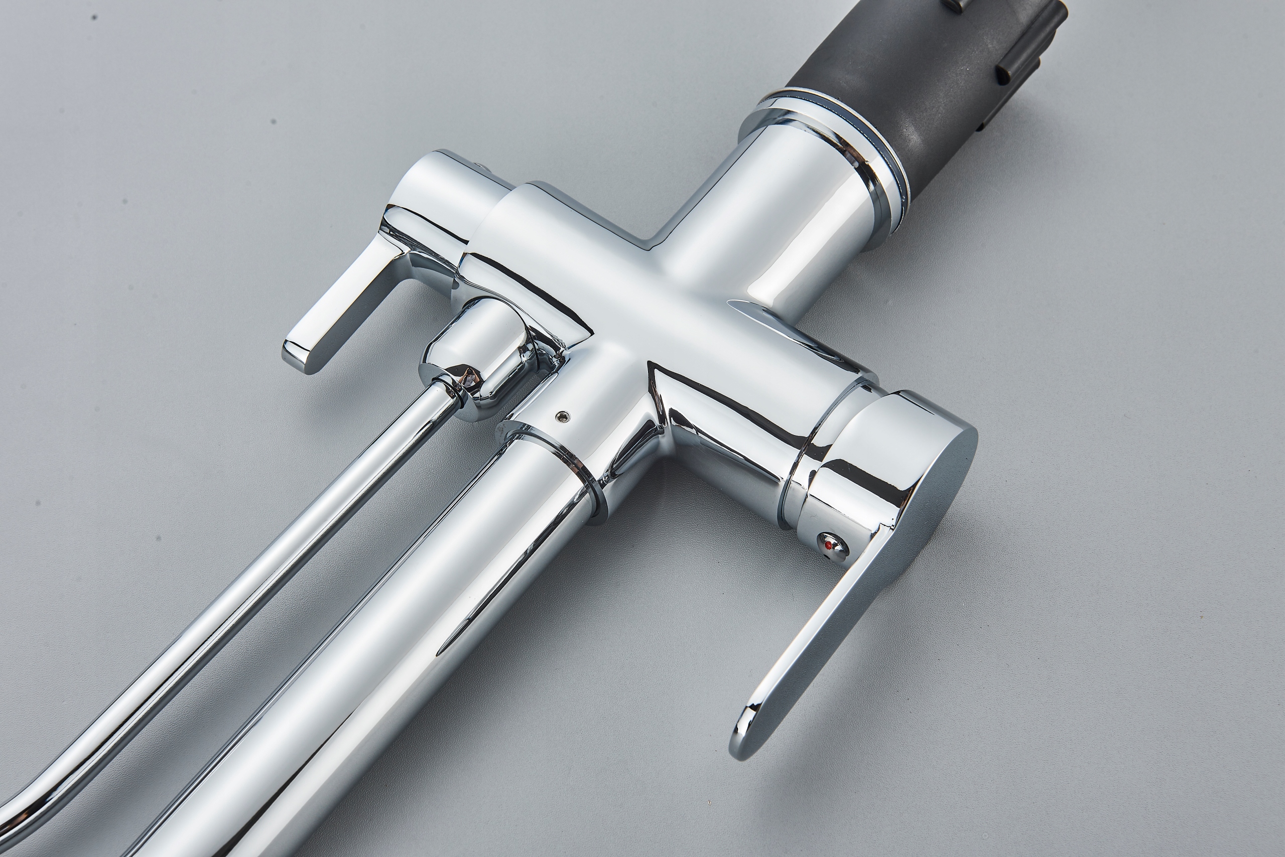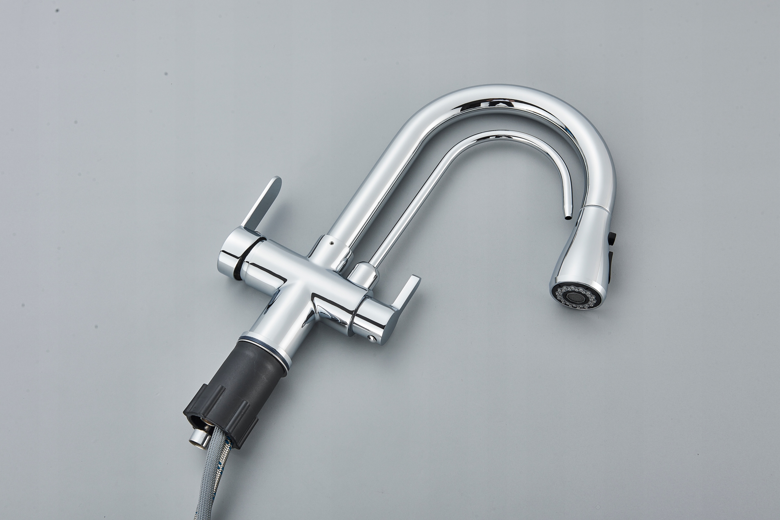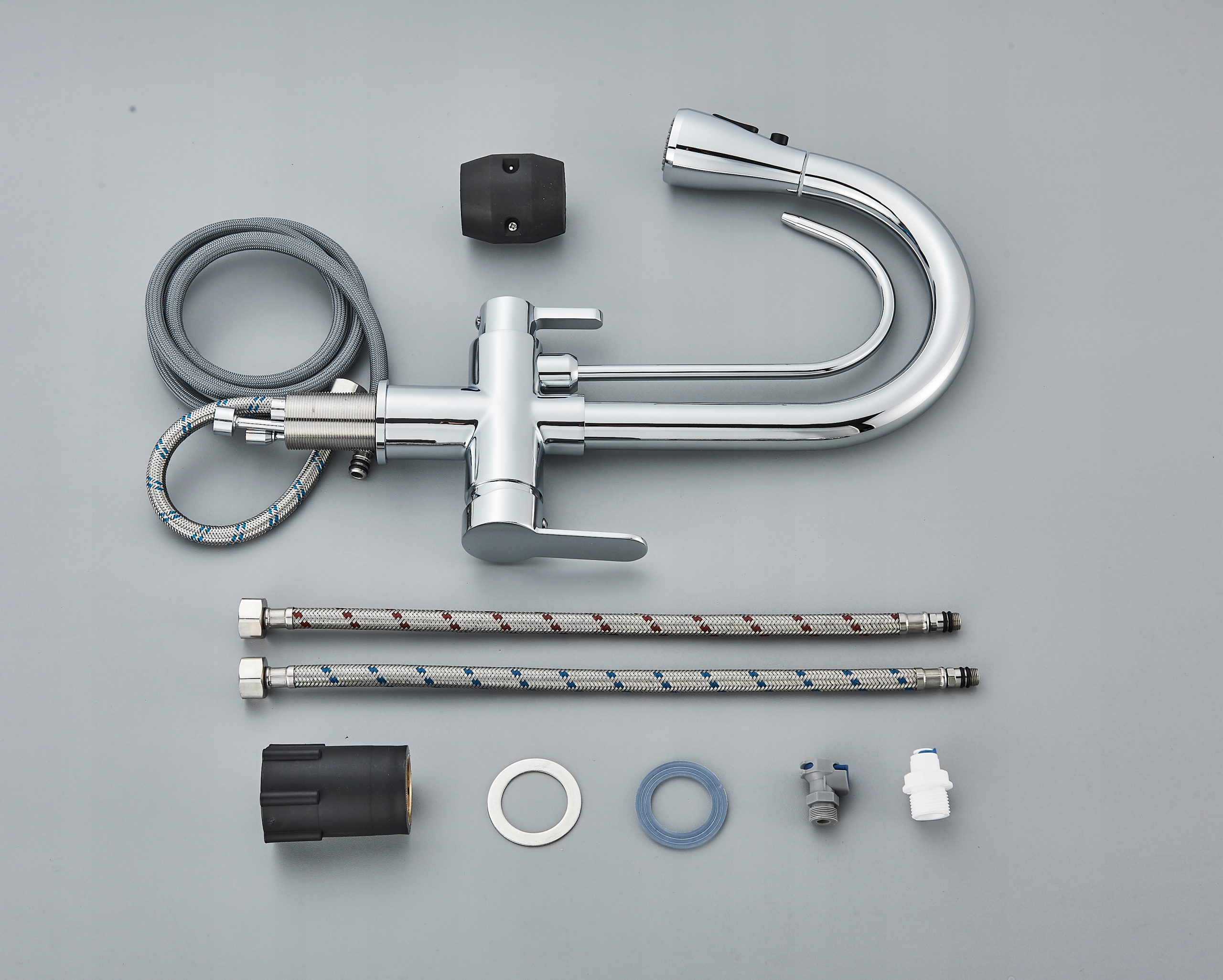 Создан для максимальной функциональности и эстетики. Наш трехходовой смеситель для кухни — это современное решение, позволяющее использовать холодную, горячую и фильтрованную воду из одного элегантного крана. Кроме того, выдвижной излив обеспечивает удобство при повседневном использовании. Благодаря этому инновационному смесителю работа на кухне становится проще, а ваша кухня приобретает современный акцент.