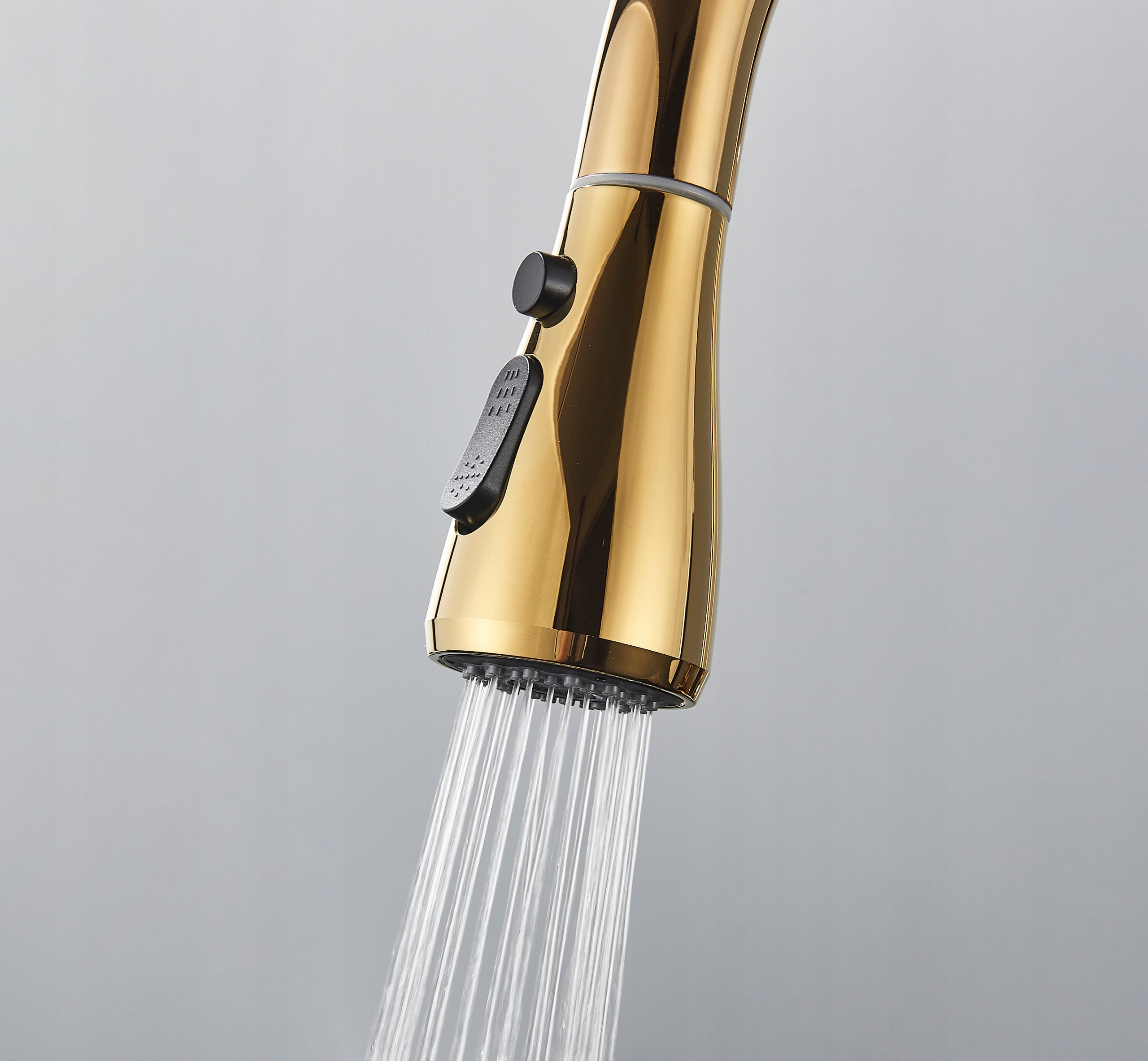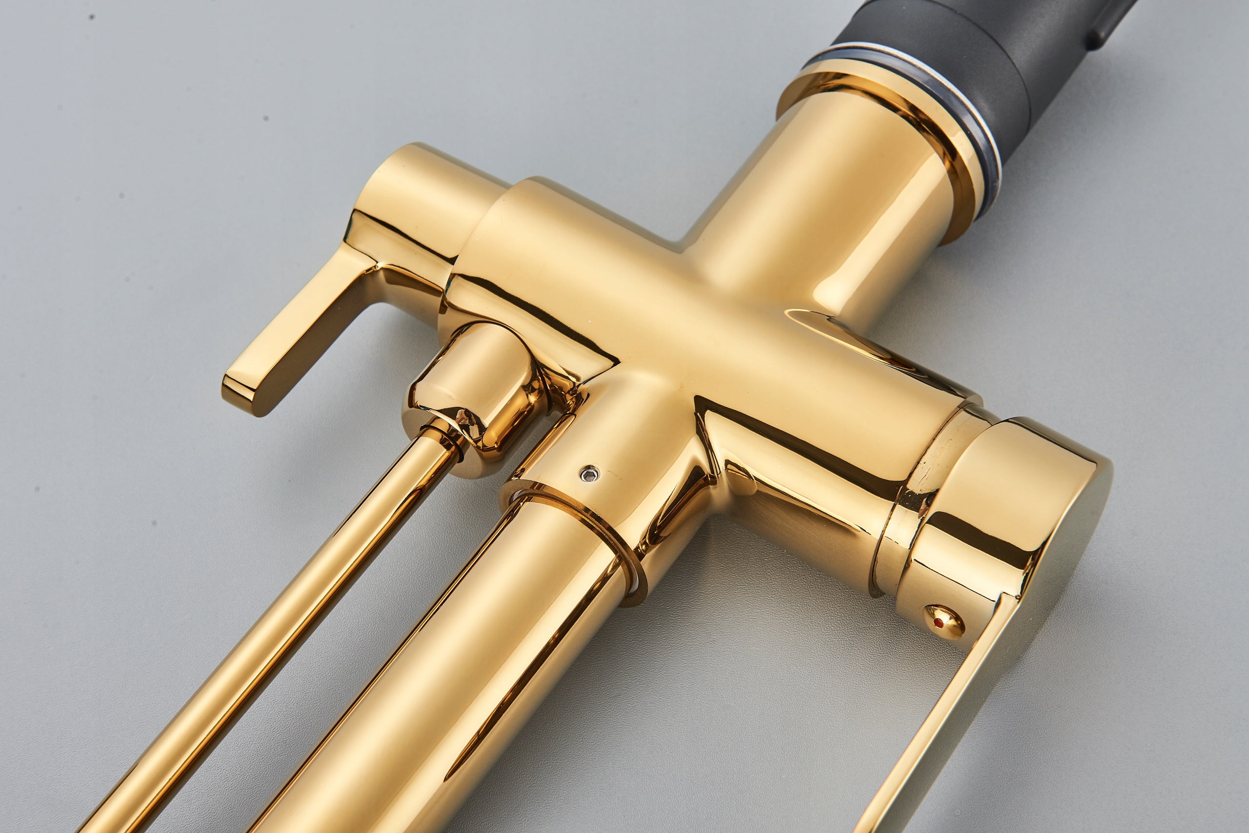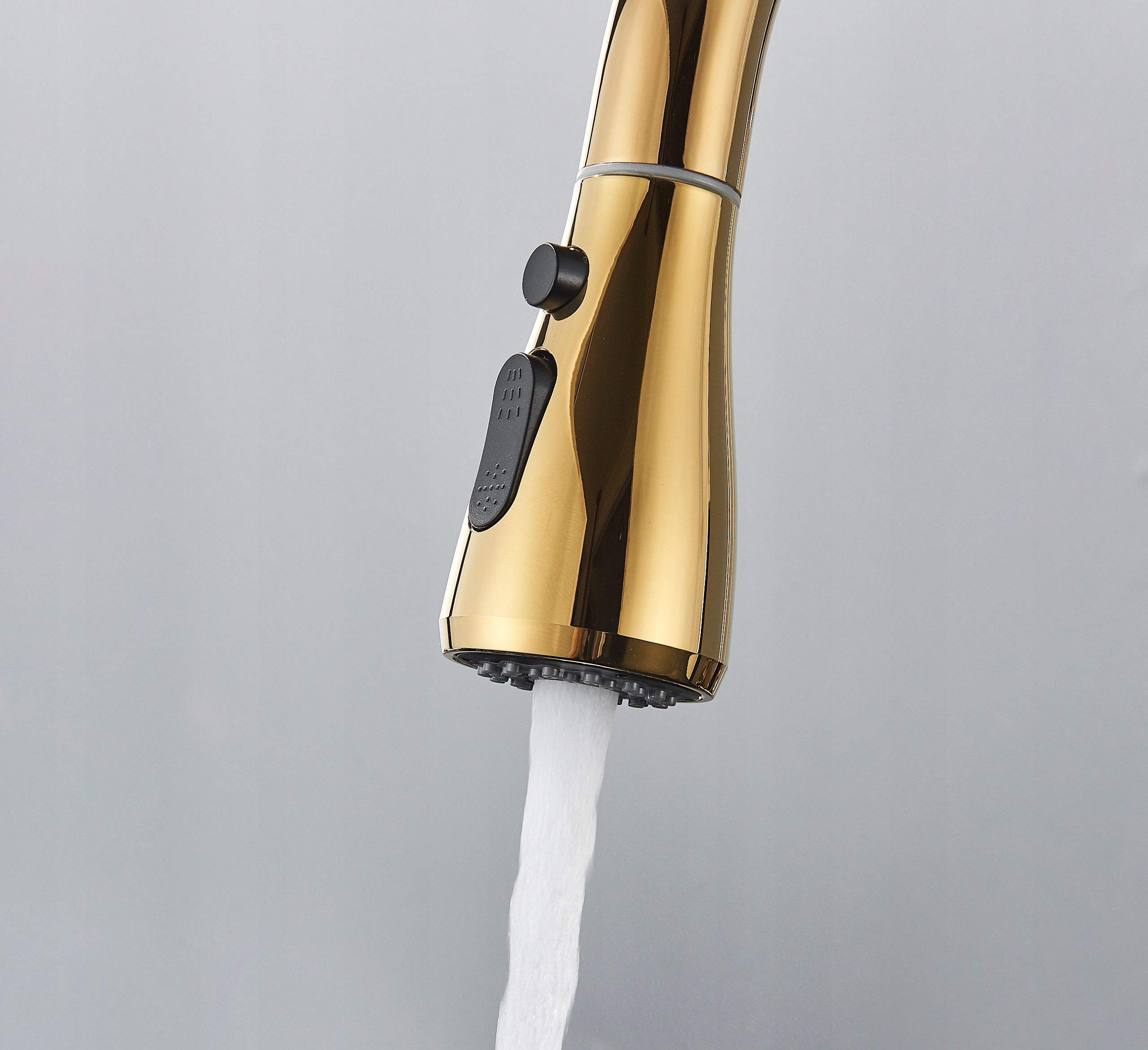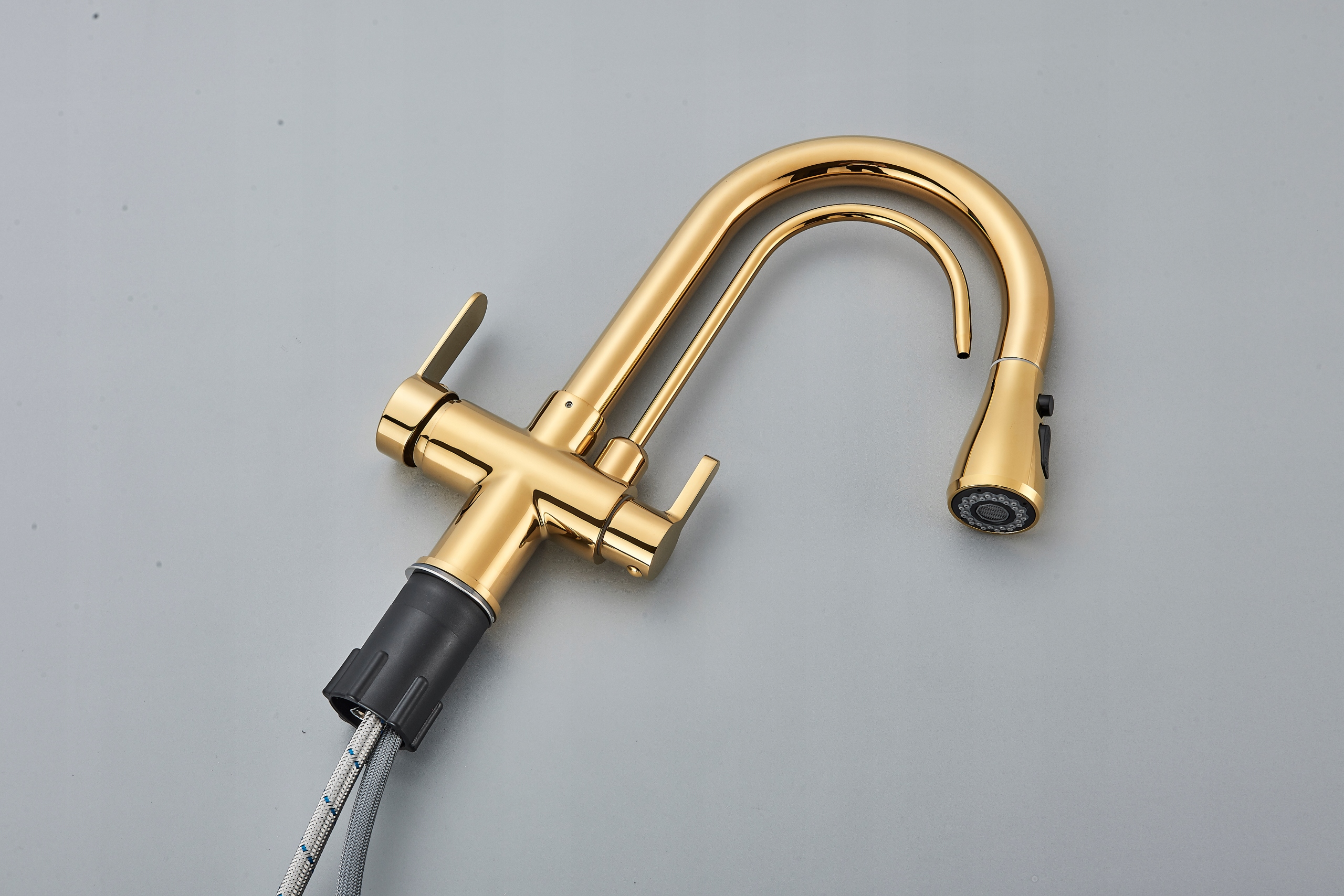 ТРЕХХОДОВОЙ КУХОННЫЙ КРАН, ФИЛЬТР, ВЫДВИЖНОЙ НОСИК, ЗОЛОТО