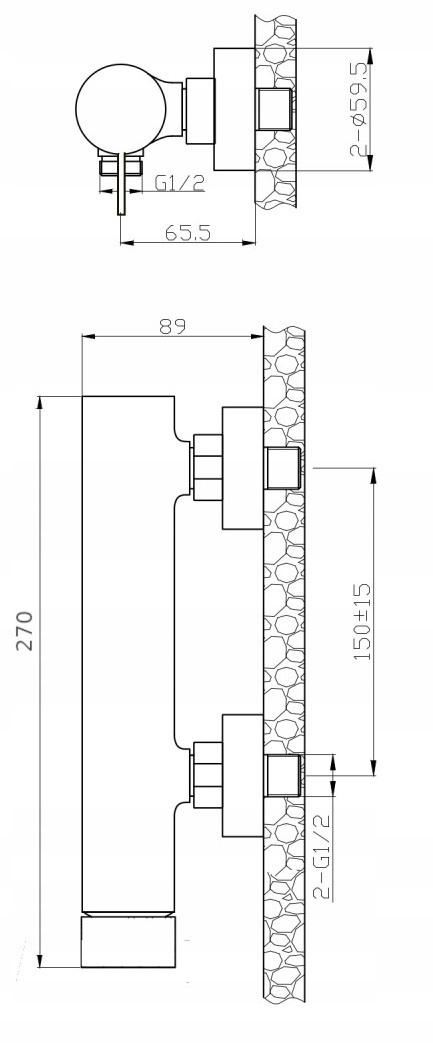 Bateria natryskowa 27x7 cm ścienna OVE CZARNA
