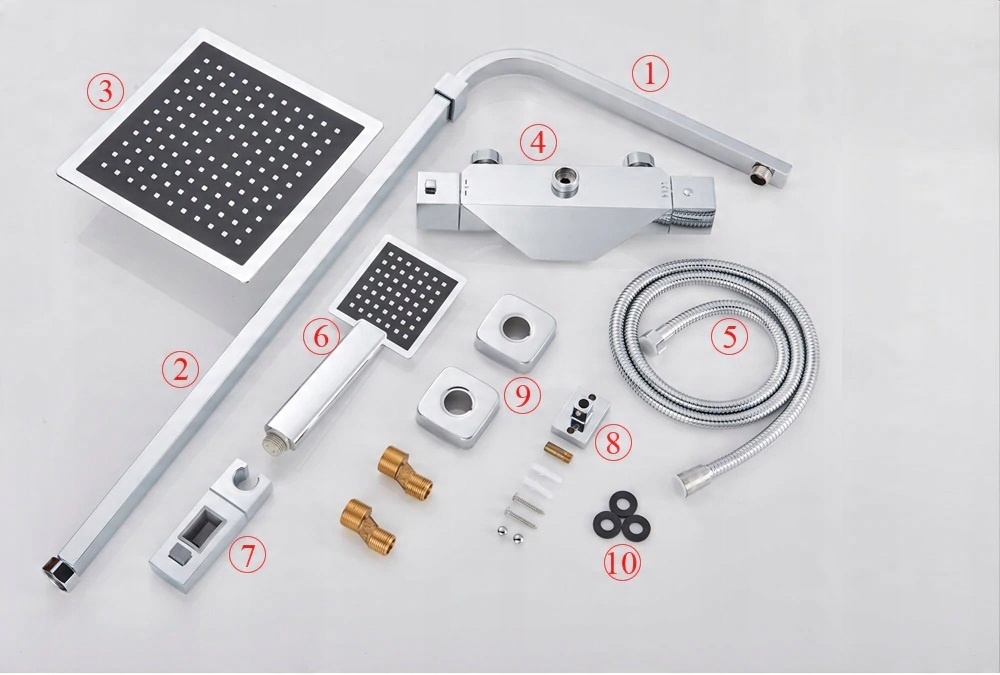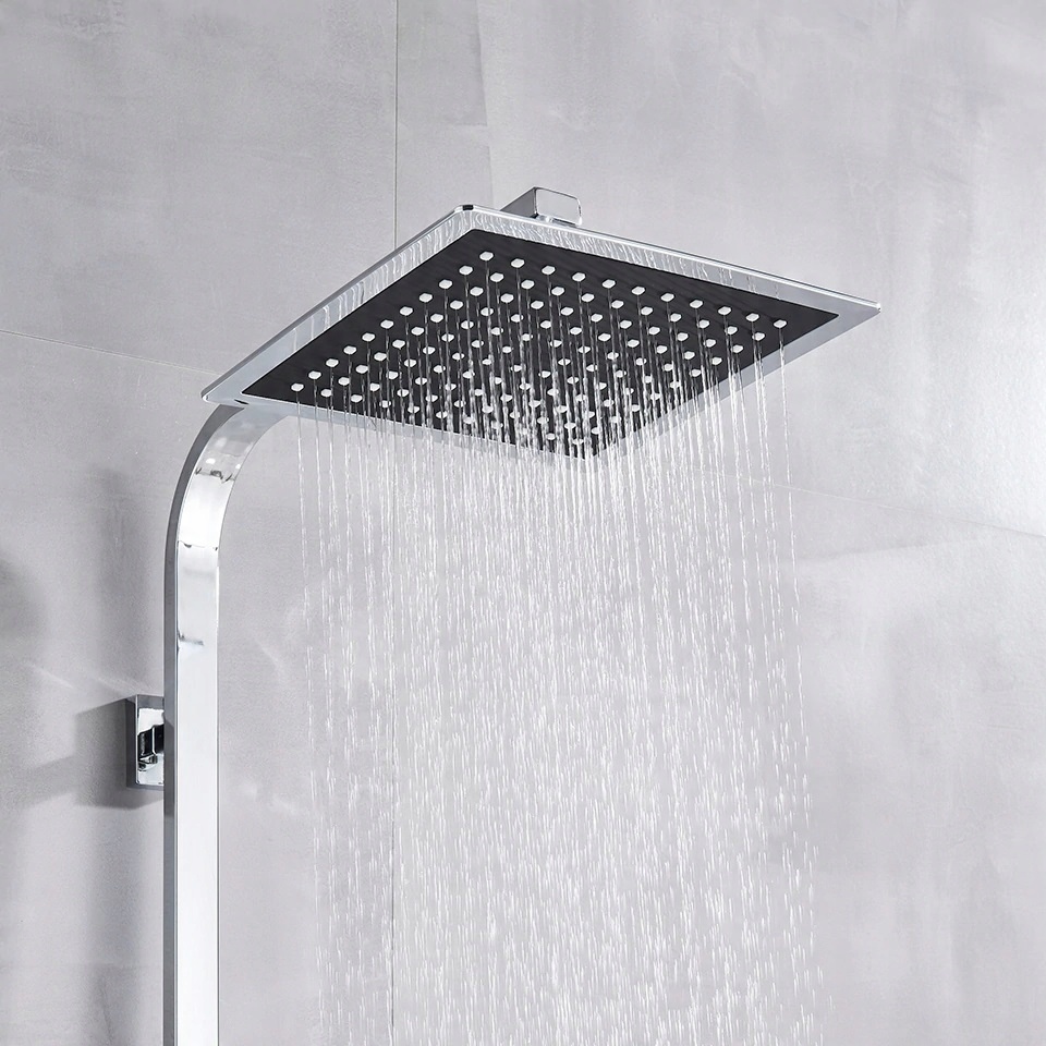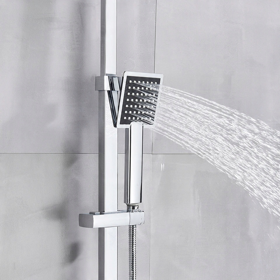 Хром + насадка для душа и смеситель с геометрическим дизайном | ТЕРМОСТАТИЧЕСКАЯ БАТАРЕЯ