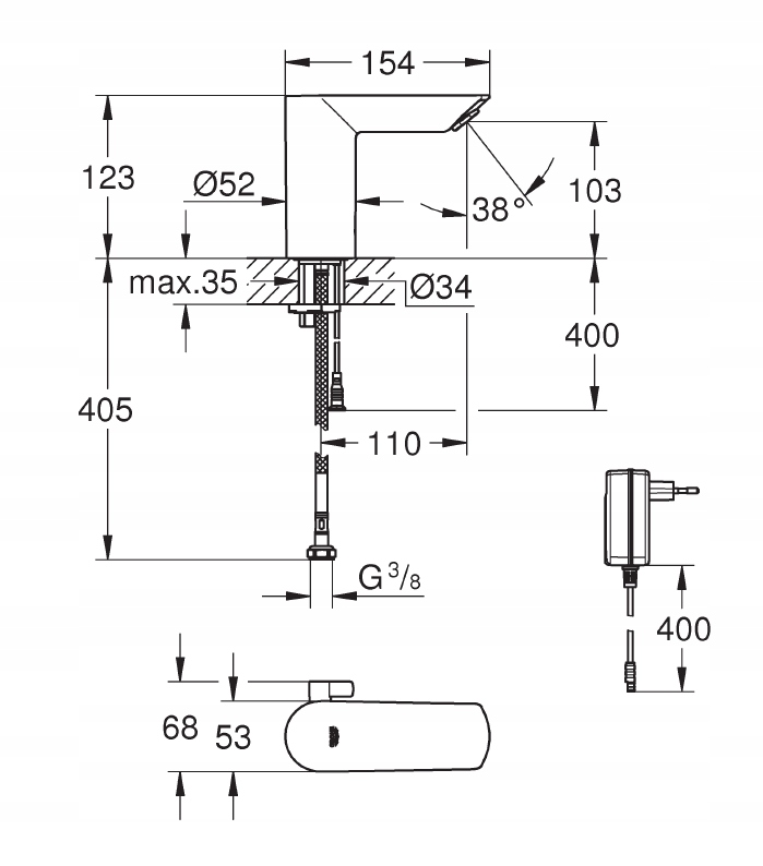 BATERIA UMYWALKOWA ELEKTRONICZNA CHROM GROHE BAU E