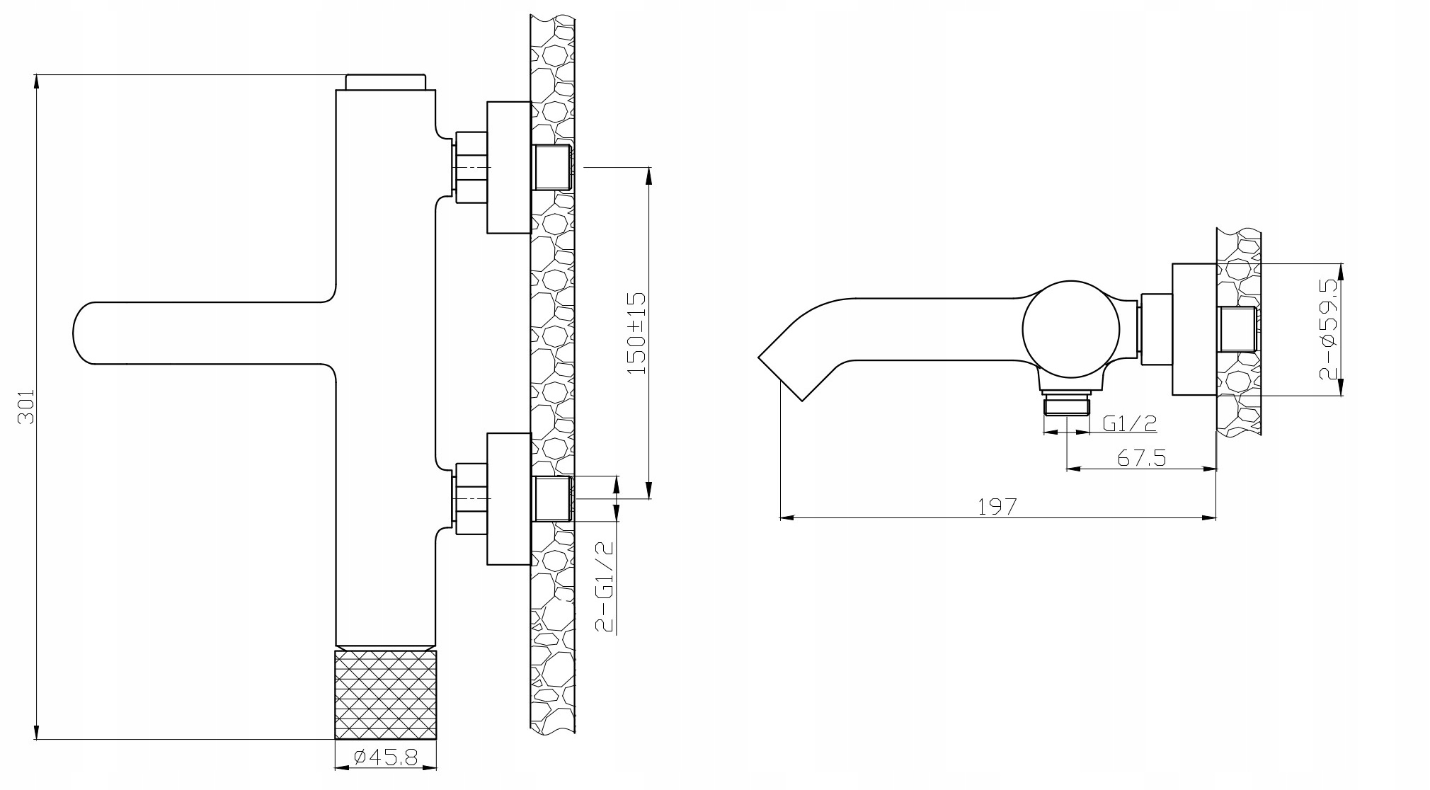 Хромированный настенный смеситель для ванны