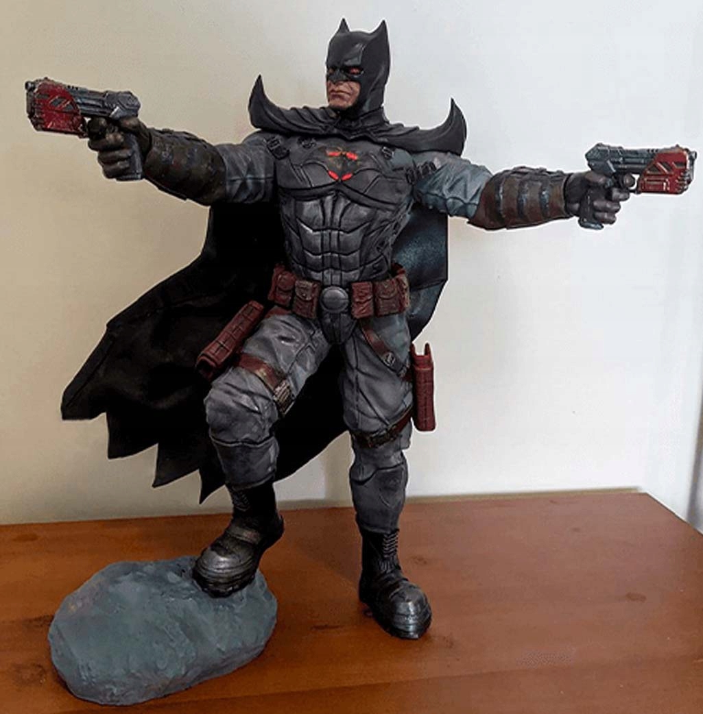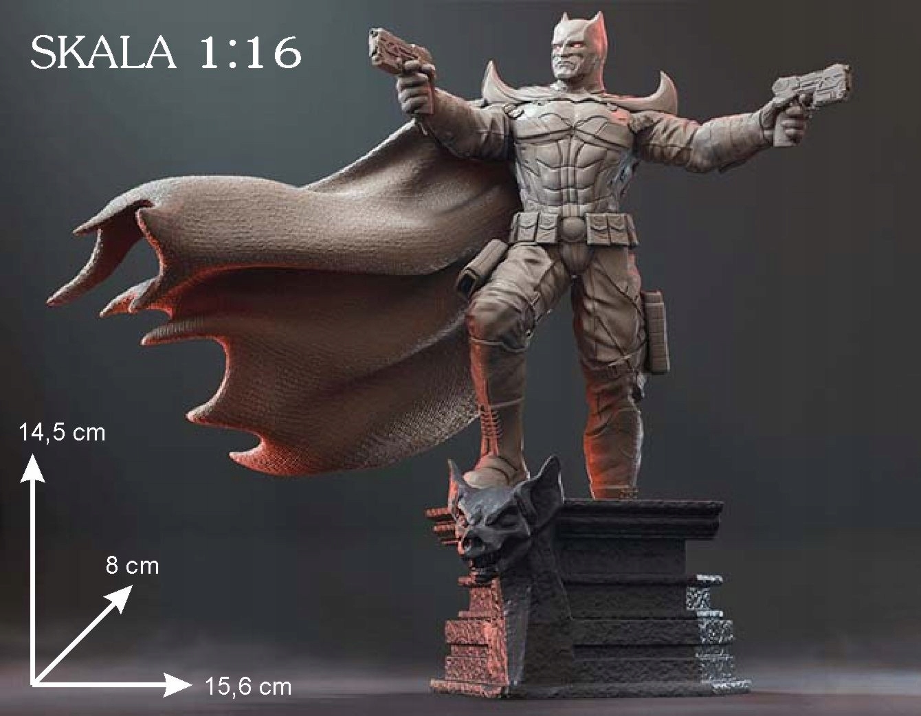 В альтернативной временной шкале «Точки воспламенения» Томас и Марта Уэйн выживают, но становятся свидетелями убийства их сына Брюса преступником. В этой версии Томас Уэйн становится Темным рыцарем и борется со злом, не щадя на своем пути ни одного преступника. Автор 3D-фигурки Томаса Уэйна потратил около 190 часов, чтобы воплотить в жизнь эту безжалостную версию Бэтмена во всей его красе. 3D-печатный рыцарь мести представлен на фрагменте здания, украшенном головой большой горгульи, похожей на летучую мышь. Сцена, скорее всего, происходит где-то в центре пронизанного преступностью Готэм-сити, поэтому неудивительно, что персонаж держит в руках два мощных пистолета, направленных в разные стороны. 3D-художник постарался учесть все отличительные особенности, которые отличают костюм Бэткостюма Flashpoint от других вариантов. И да, подплечники костюма Томаса Уэйна довольно большие и остроконечные, а уши короткие и изящные. В Готэм-сити, должно быть, довольно ветрено, потому что тяжелая накидка Бэтмена не остается на месте — она развевается за спиной линчевателя, обнажая замысловатую «ткань» накидки. В комплект Wayne's Utility Belt входят двенадцать сумок, в которых обязательно найдется все необходимое для борьбы с преступностью. На ногах Бэтмена также есть две большие кобуры, которые крепятся с помощью нескольких тщательно детализированных ремней. Томас Уэйн, несомненно, выглядит очень устрашающе и мощно в своем костюме Бэтмена, явно оправдывая свою репутацию гораздо более жестокого крестоносца в плаще.