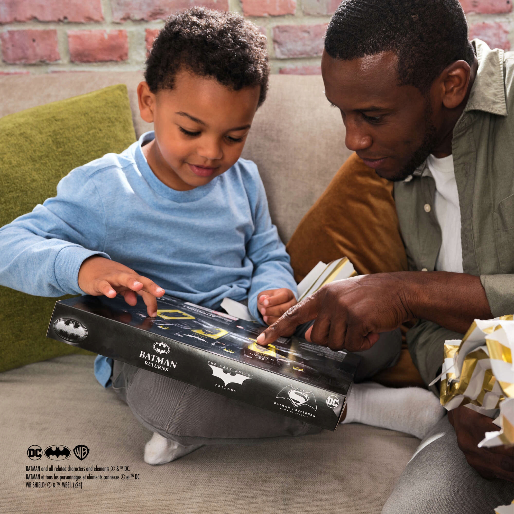 Набор, посвященный 85-летию Темного рыцаря, включает в себя три детализированные фигурки, вдохновленные тремя известными фильмами: «Бэтмен возвращается», «Темный рыцарь» и «Бэтмен против Супермена». Высота каждой фигурки составляет 10 см, и она была создана с вниманием к деталям, что делает ее уникальным предметом коллекционирования.