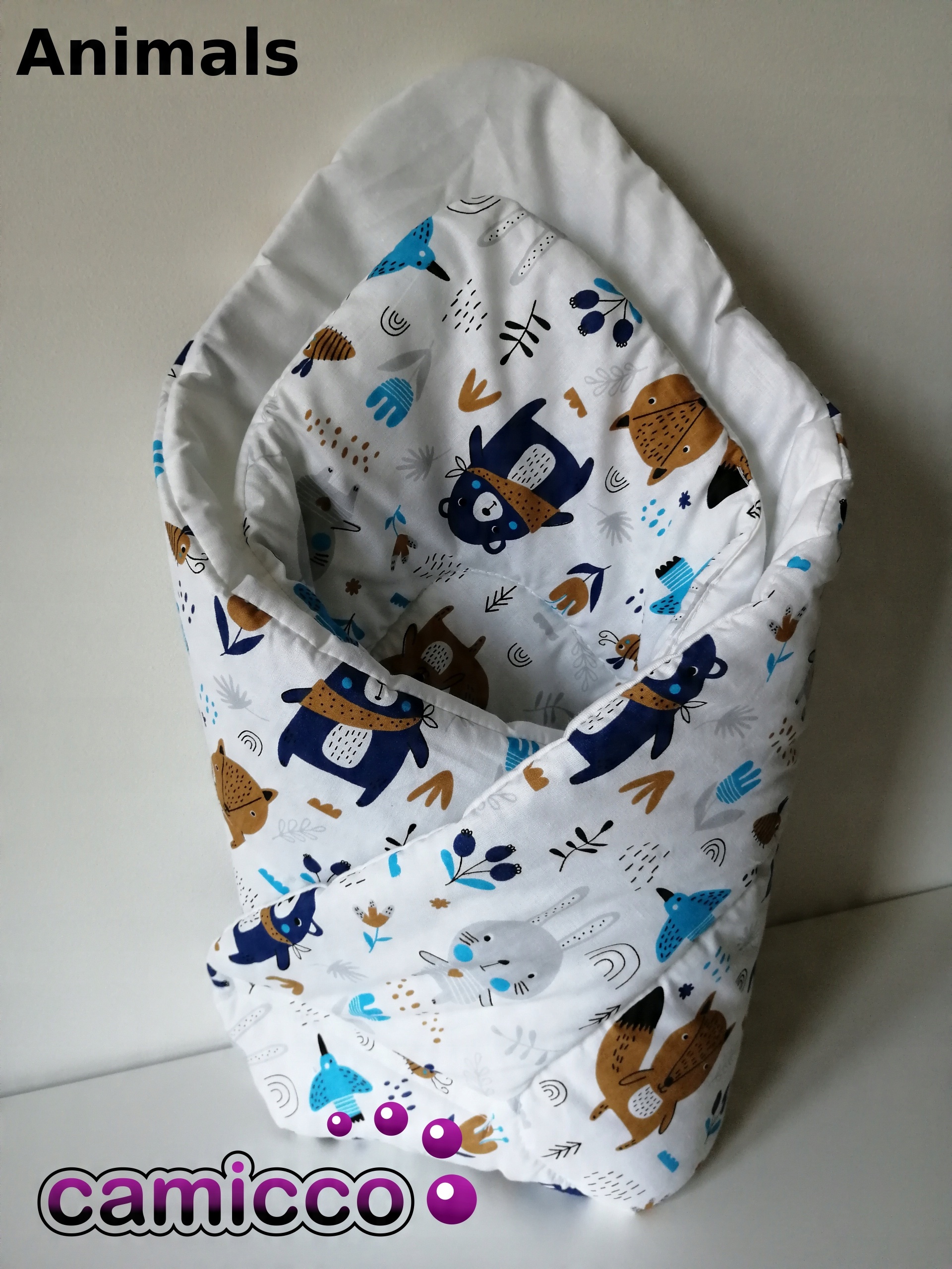 Пеленка изготовлена из 100% хлопка, имеет закругленные края, что позволяет легко придать ей нужную форму при укутывании малыша, застегивается на липучку