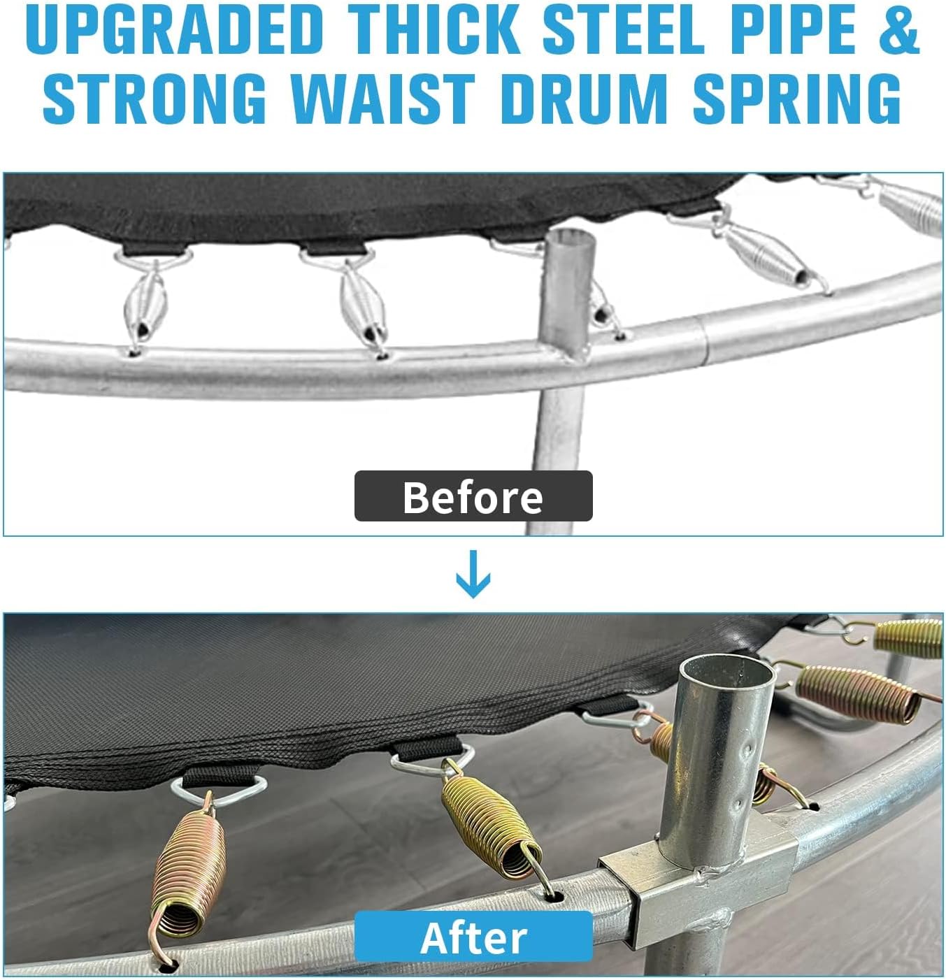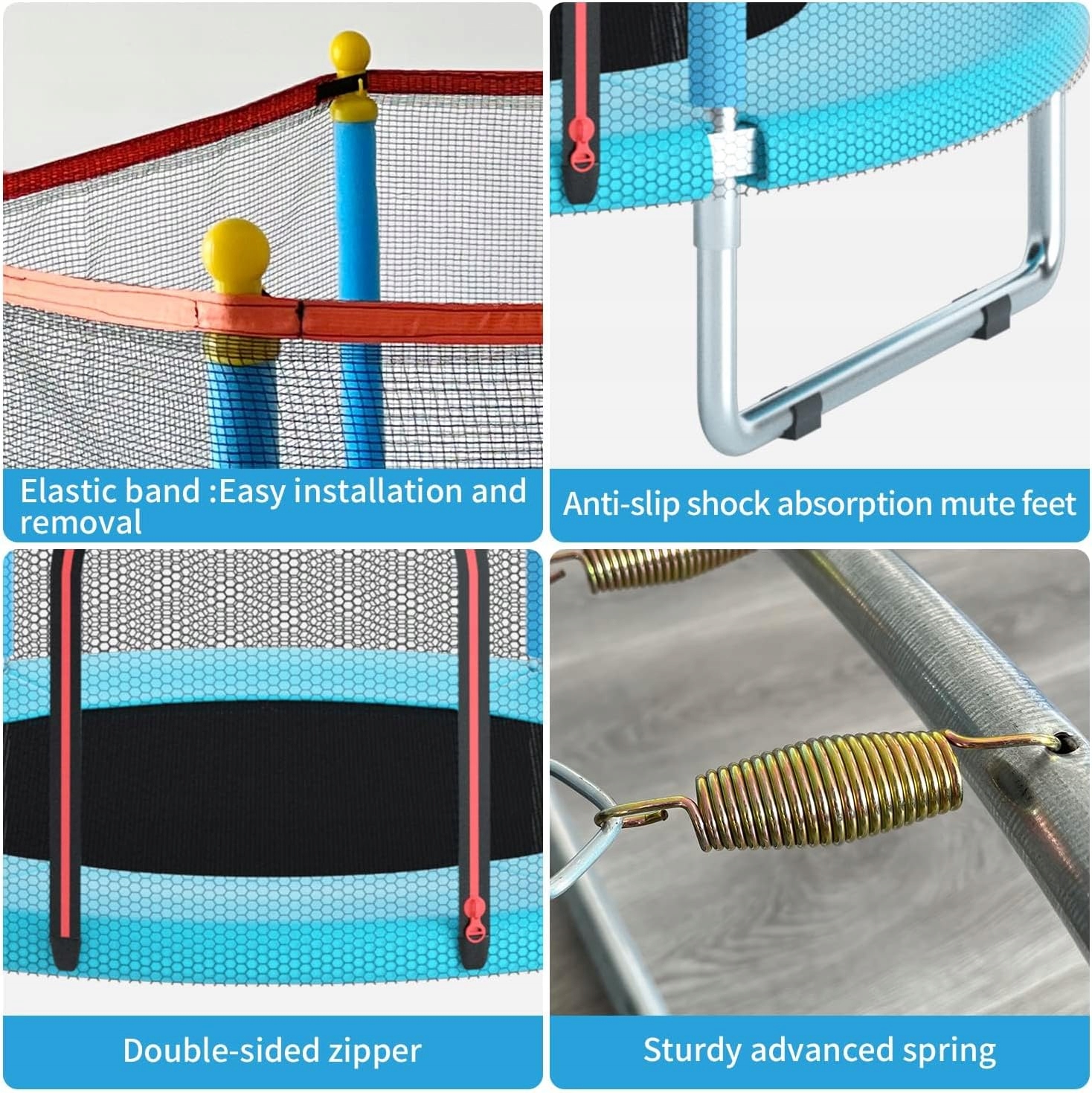 Продукт отличается уникальными характеристиками, гарантирующими надежность. Шесть пенопластовых бамперов прекрасно поглощают возможные столкновения, а толстая защитная сетка, достигающая 120 см, эффективно защищает от выпадения. U-образная рама из нержавеющей стали обеспечивает стабильность и устойчивость к коррозии. Мат для прыжков с трамплина с нескользящим покрытием водонепроницаем и легко чистится, а 36 пружин из нержавеющей стали обеспечивают плавность и бесшумность прыжков.