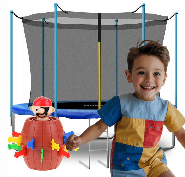 САДОВЫЙ ДЕТСКИЙ батут F-STAR 254 СМ 8 ФУТОВ С СИНЕЙ СЕТКОЙ + ПИРАТСКАЯ ИГРА