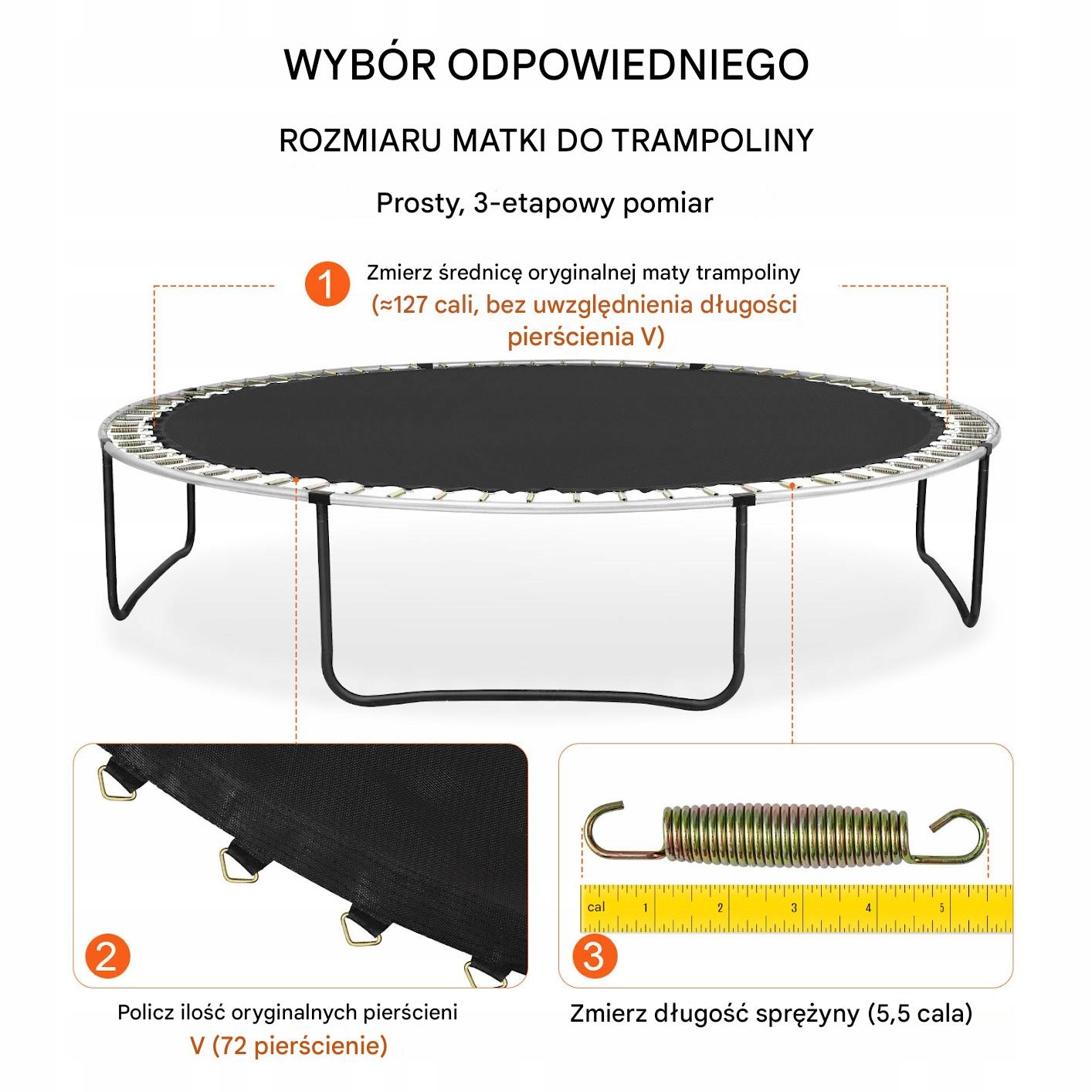 - ✅ Idealne Dopasowanie: Pasuje Do Trampoliny O średnicy 365 см z 72 Zaczepami typu v i spręynami 14 см.
