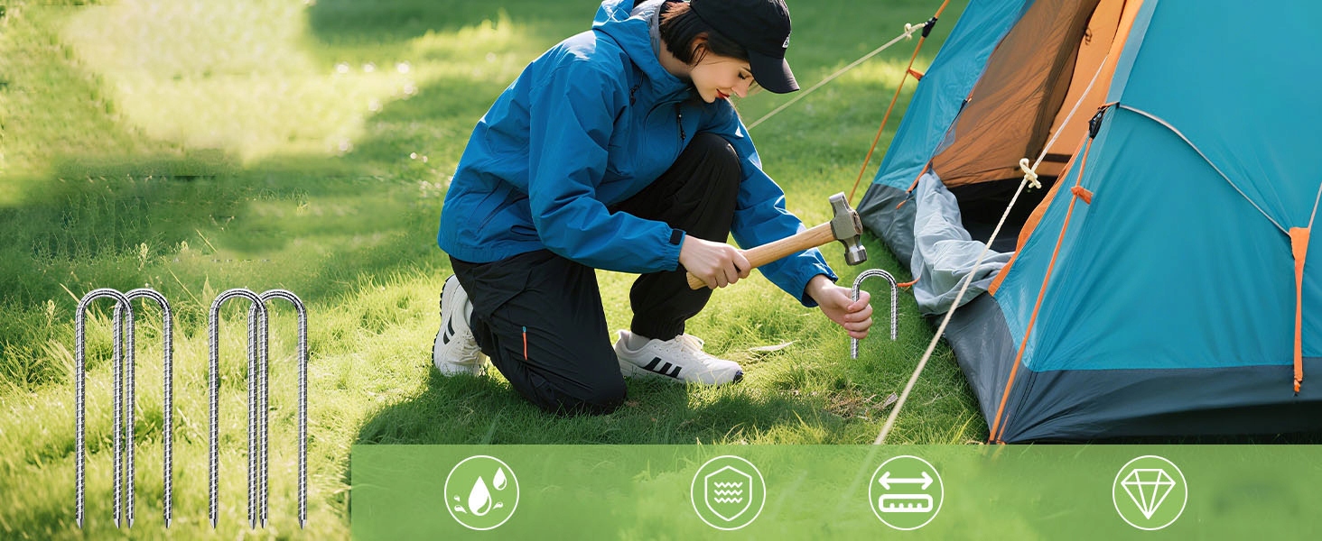 - Просто нежный удар молотка, чтобы втянуть их в землю, не давая палатке во время кемпинга.