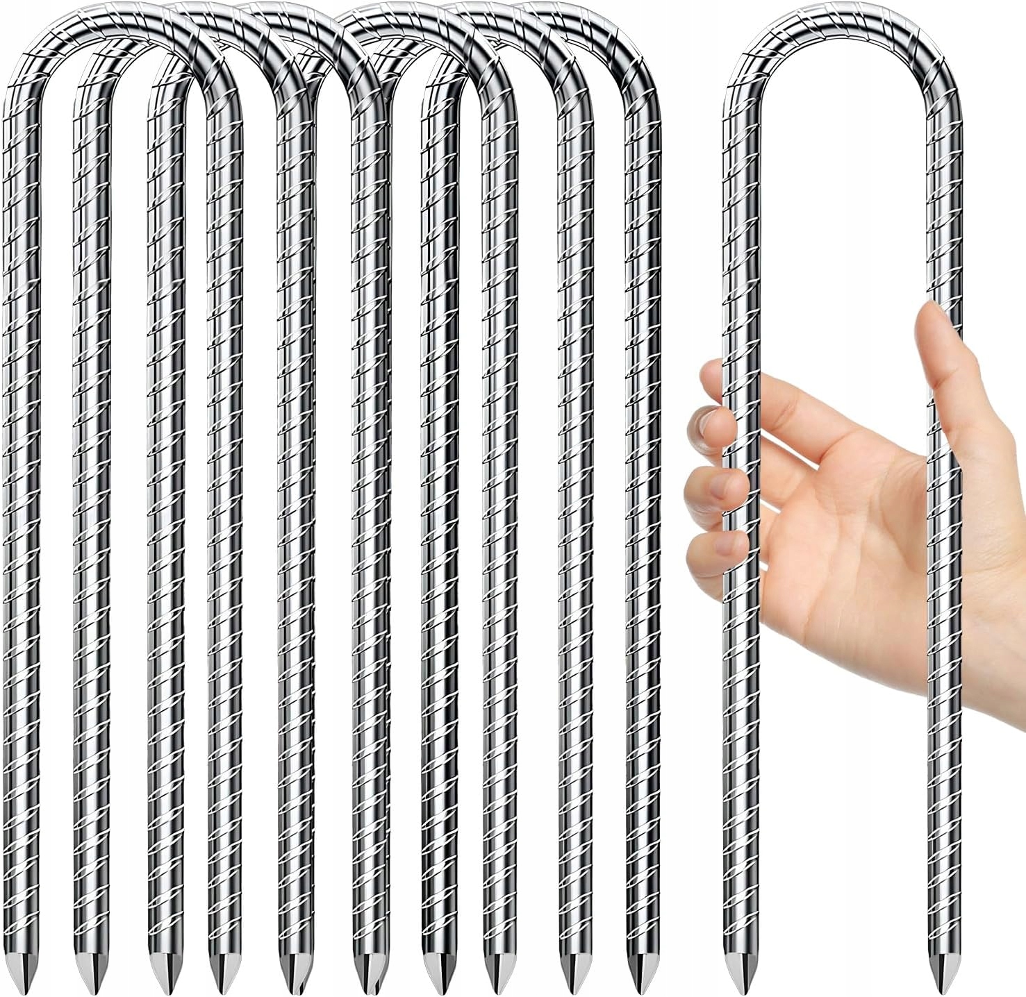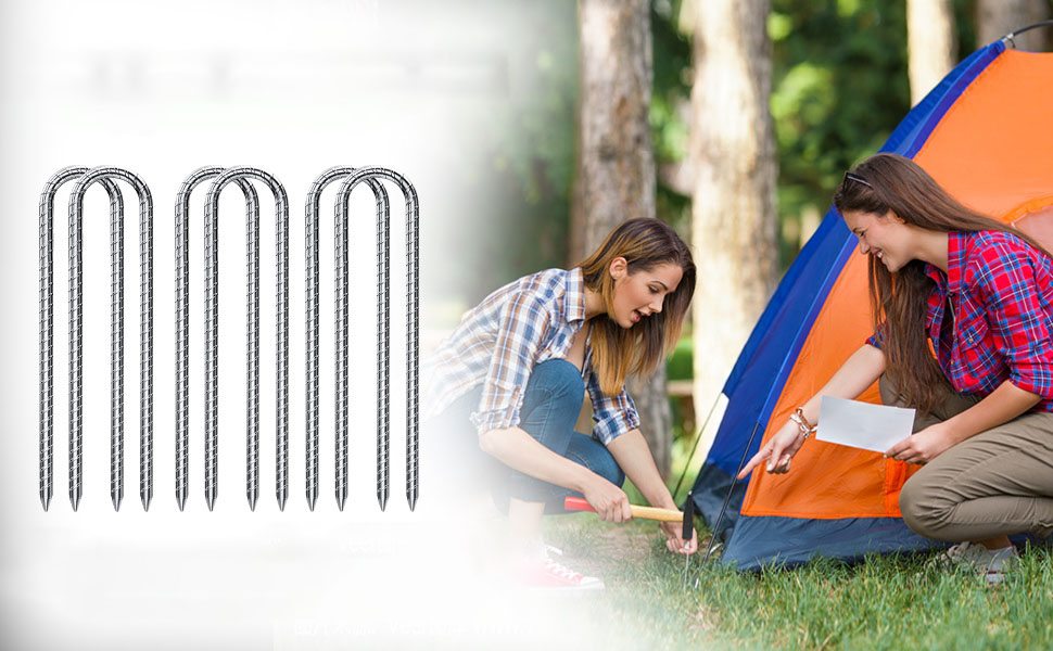 - Нарезанный кончик этого u - -образной земной якоря очень острый и может легко застрять с молотком в землю, траву, песок, твердую и каменную поверхность. Земля: