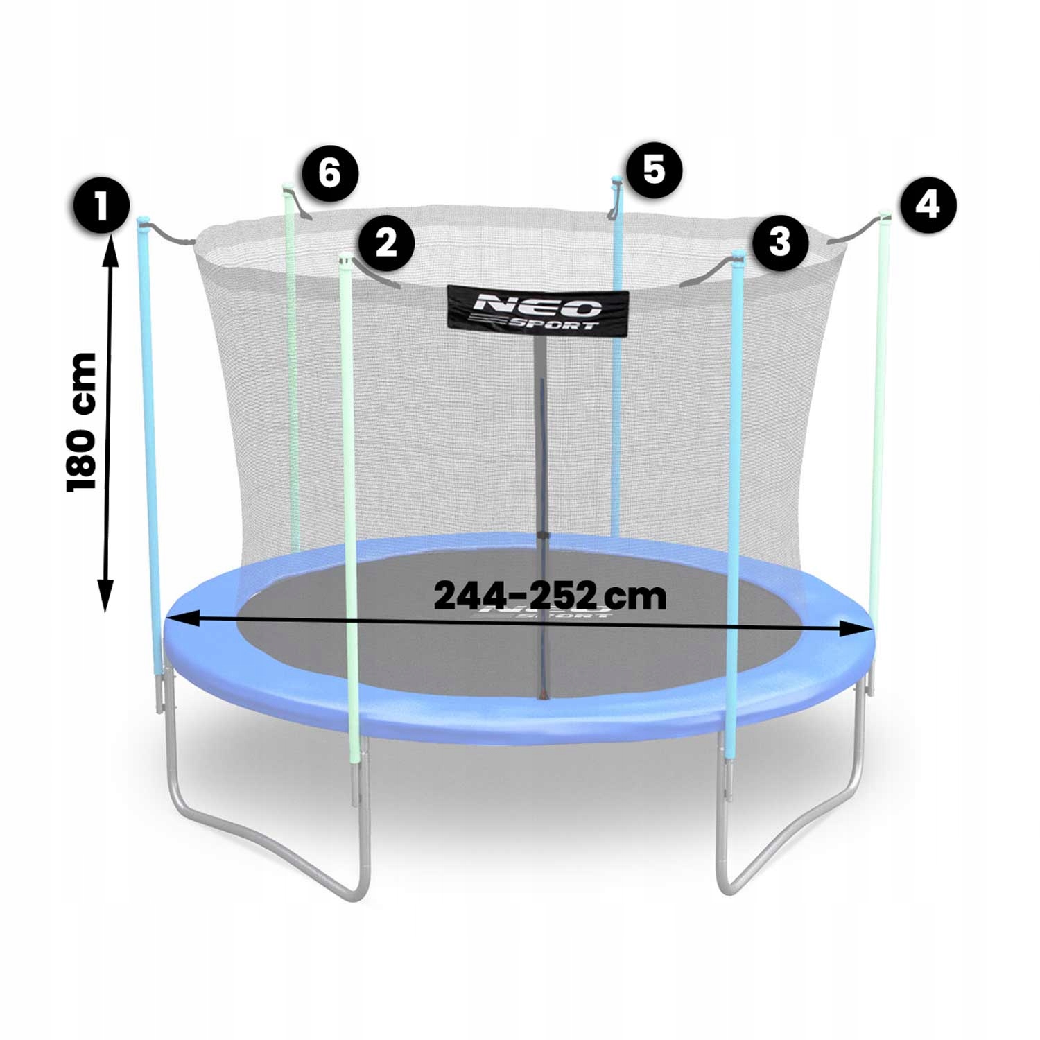 ✔ Сетка предназначена для батутов диаметром 252 (8 футов) на 6 стоек.