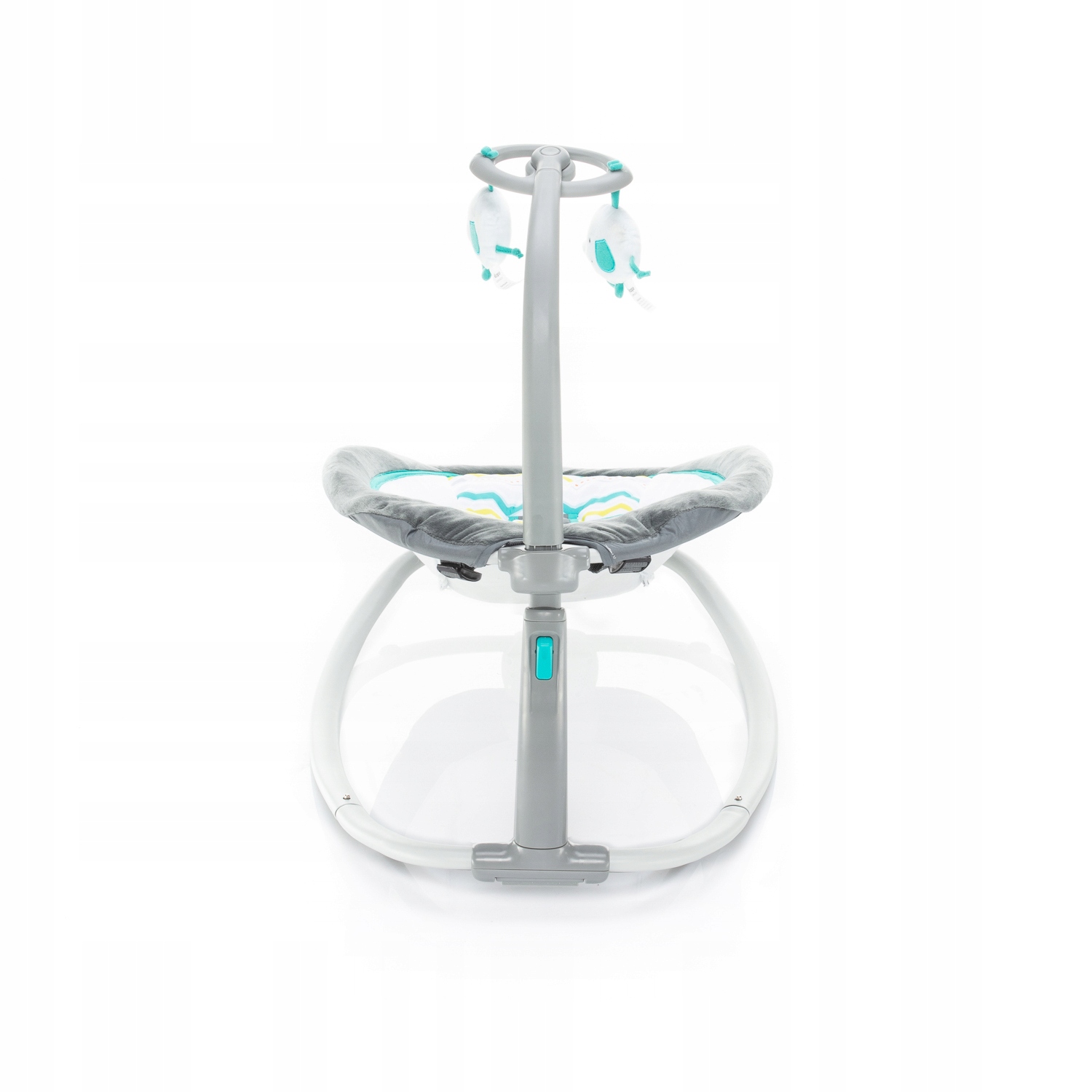 Кресло-качалка дополнительно оснащено приятным режимом вибрации, который успокаивает малыша. Дополнительно имеется звуковой модуль с выбором множества простых мелодий, громкость которых можно плавно регулировать. Горизонтальный ободок со съемными плюшевыми игрушками также развлечет вашего маленького принца или принцессу.