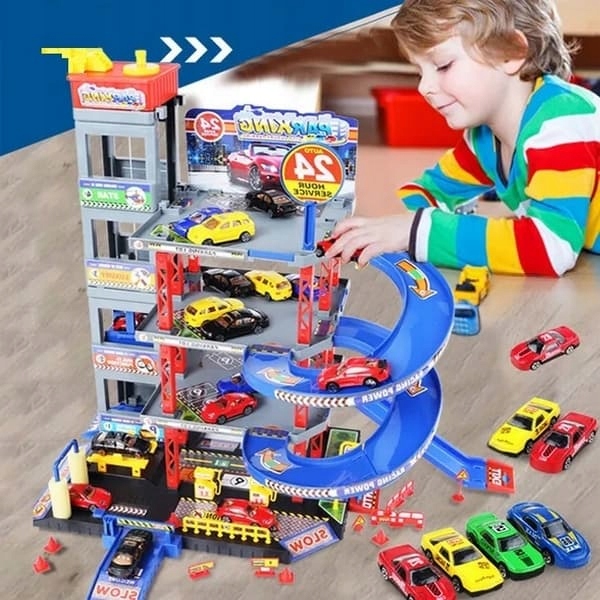 Многоуровневый гараж - автостоянка с автомобилями и вертолетом - это исполнение мечты каждого маленького мальчика.