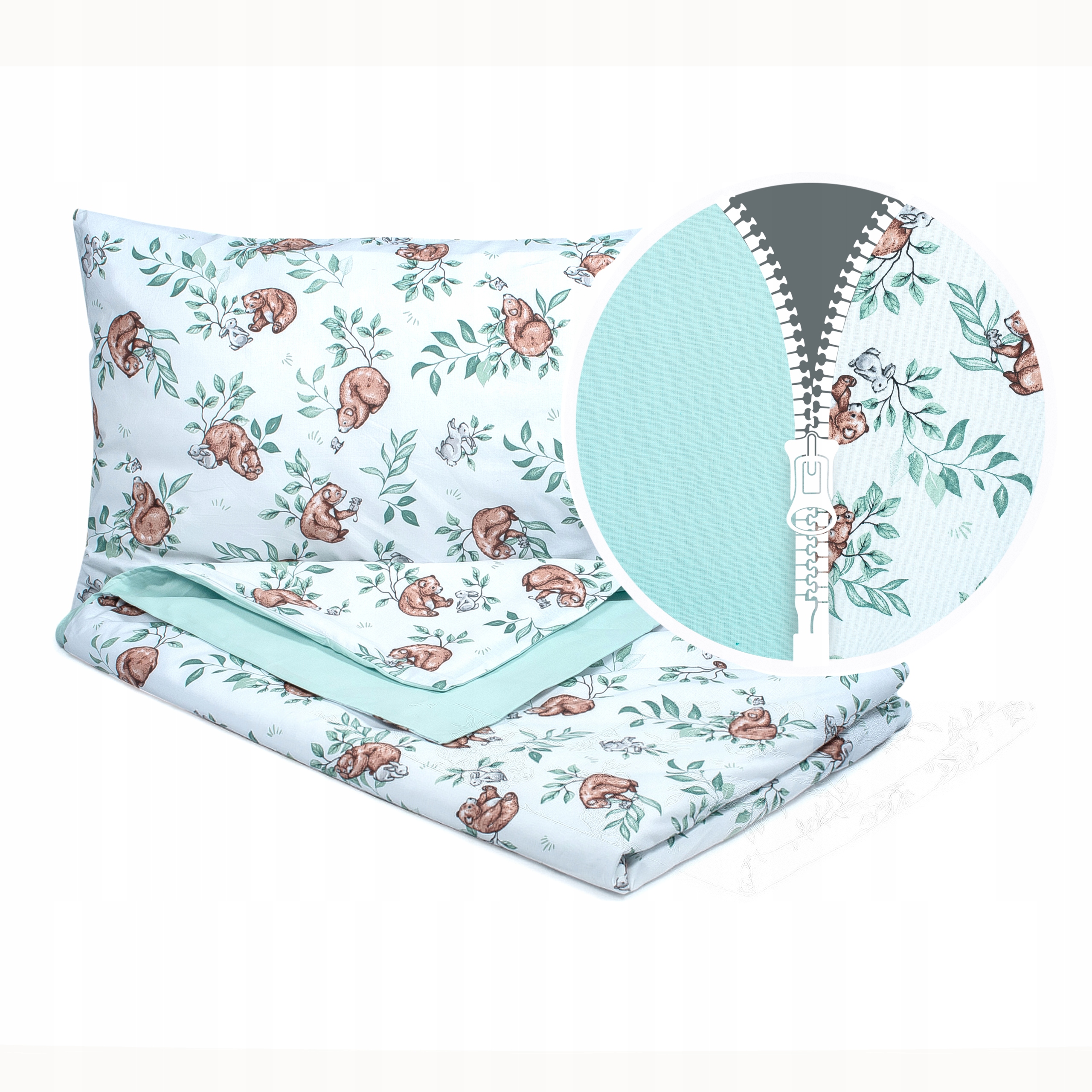 Постельное белье изготовлено полностью из высококачественного сертифицированного польского хлопка. Наволочки имеют закрытые молнии, которые не доставляют ребенку дискомфорта. Дополнительным преимуществом является то, что мы используем пластиковые молнии, которые не вызывают аллергии и безопасны также для аллергиков.