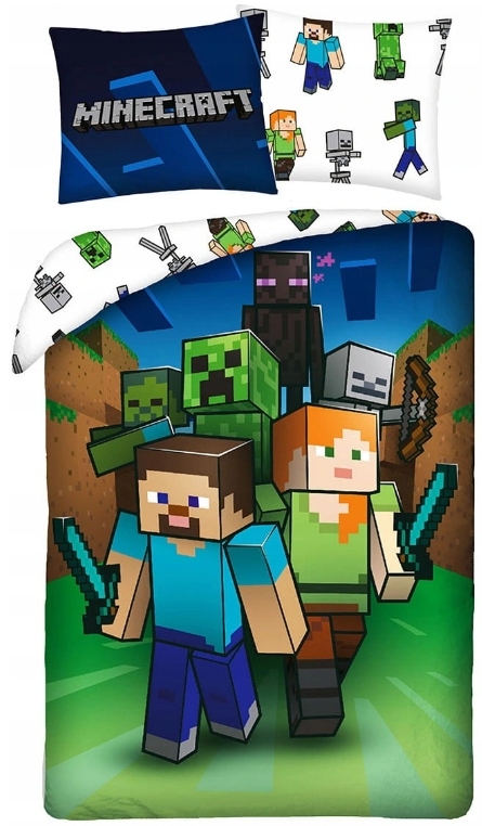 БАВОВНА ПОСТІЛЬНА БІЛИЗНА 140 X 200 НАВОЛКА MINECRAFT ОРИГІНАЛ.
