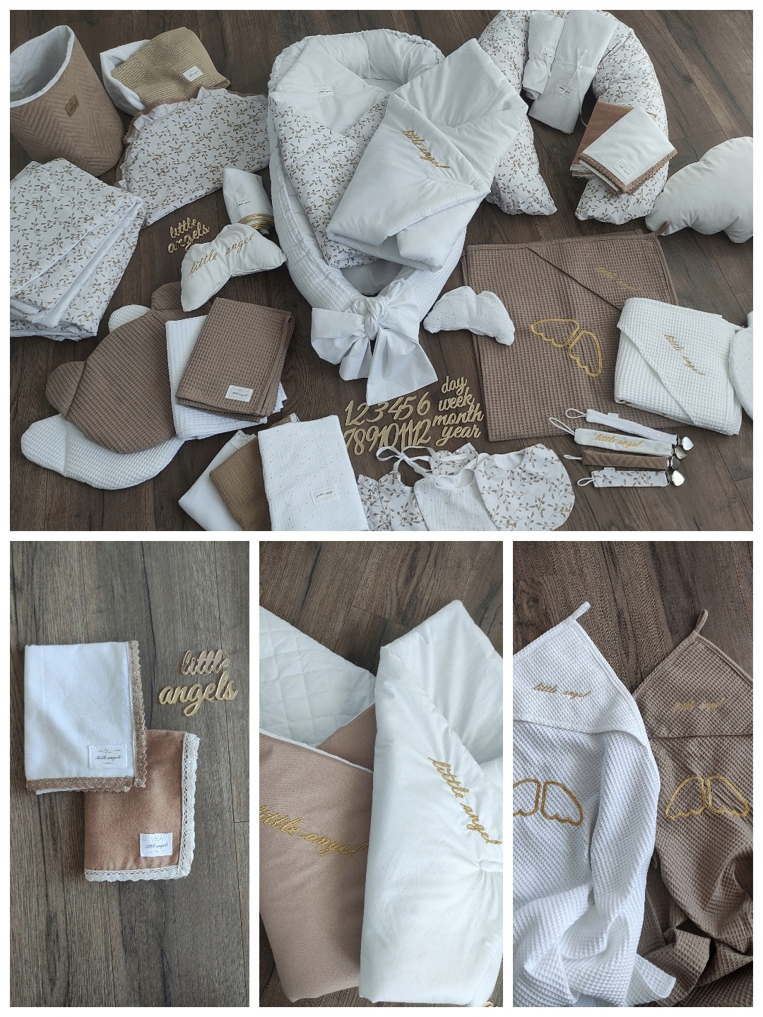 Белый отлично подходит для крещения и может использоваться ежедневно (он будет соответствовать всем, унисекс). Другой цвет конуса? Что? Мы отправим доступные оттенки, и если у нас их не будет, мы закажем его. Надпись и крылья могут быть вышиты в любом цвете, а также добавить имя ребенка, например, под крыльями.
