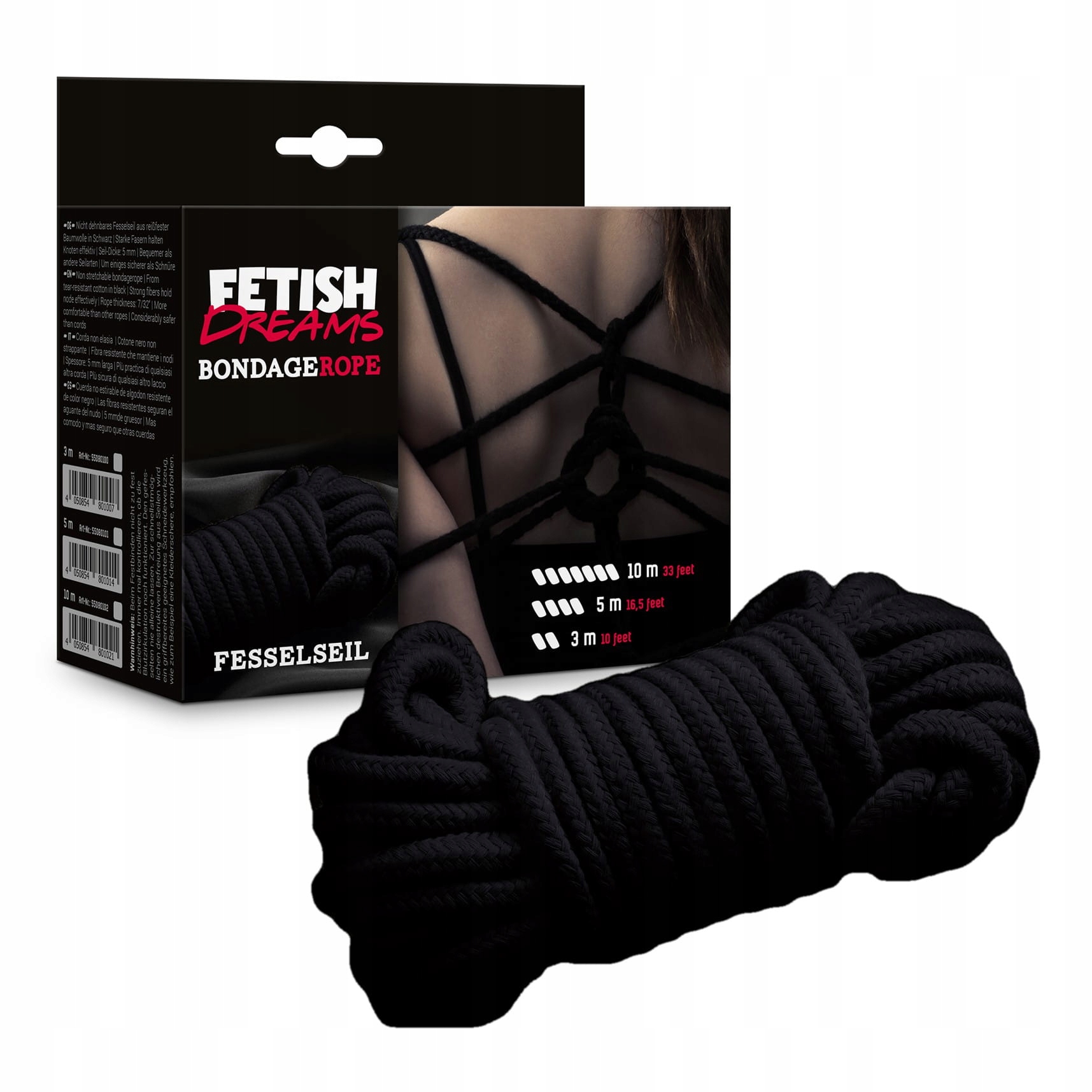 Нерастягивающаяся веревка из чистого хлопка черного цвета. Прочные волокна эффективно удерживают узлы. Удобнее, чем другие типы веревок, и намного безопаснее, чем обычные веревки!