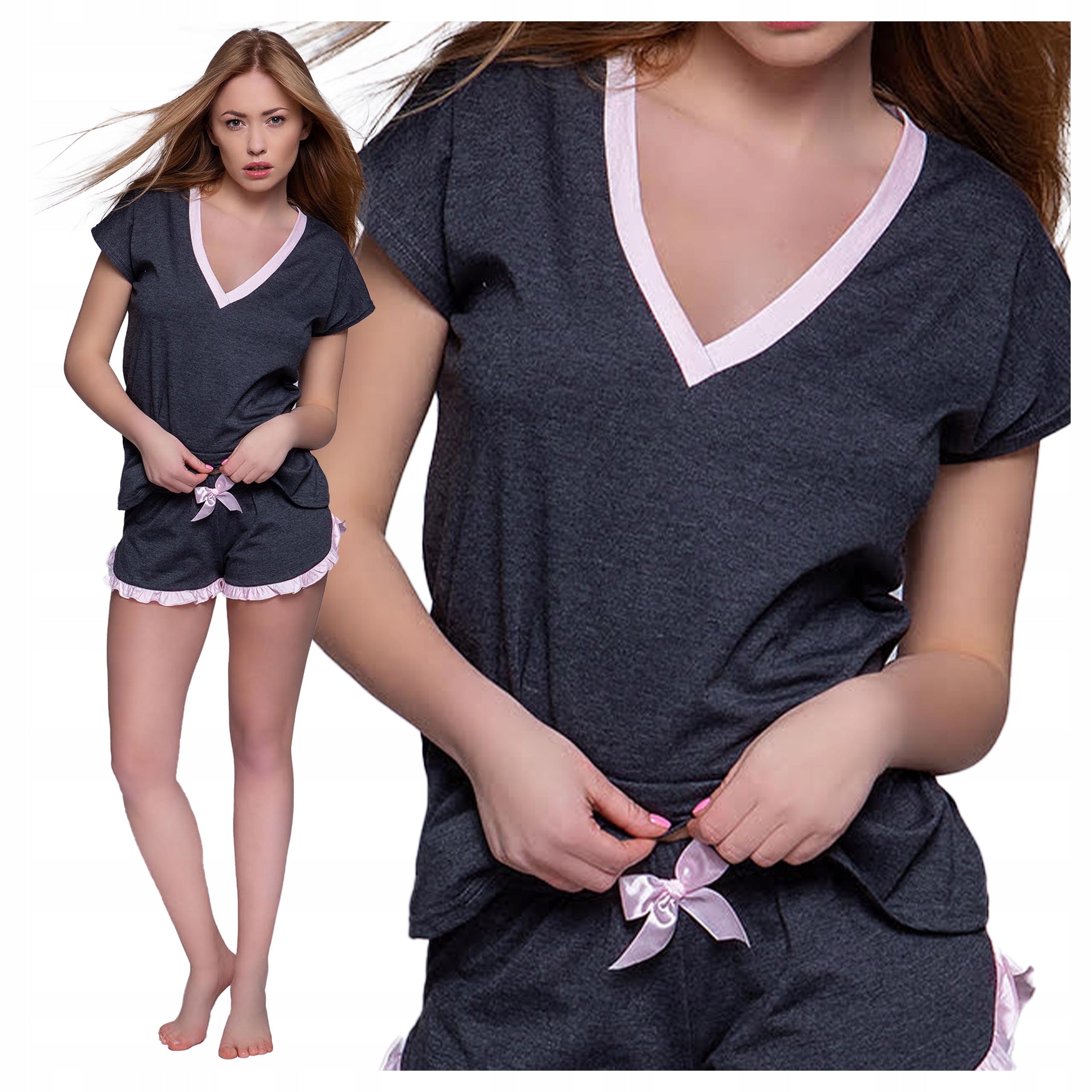 Короткая хлопковая пижама с короткими рукавами и графитовые шорты Nadia
