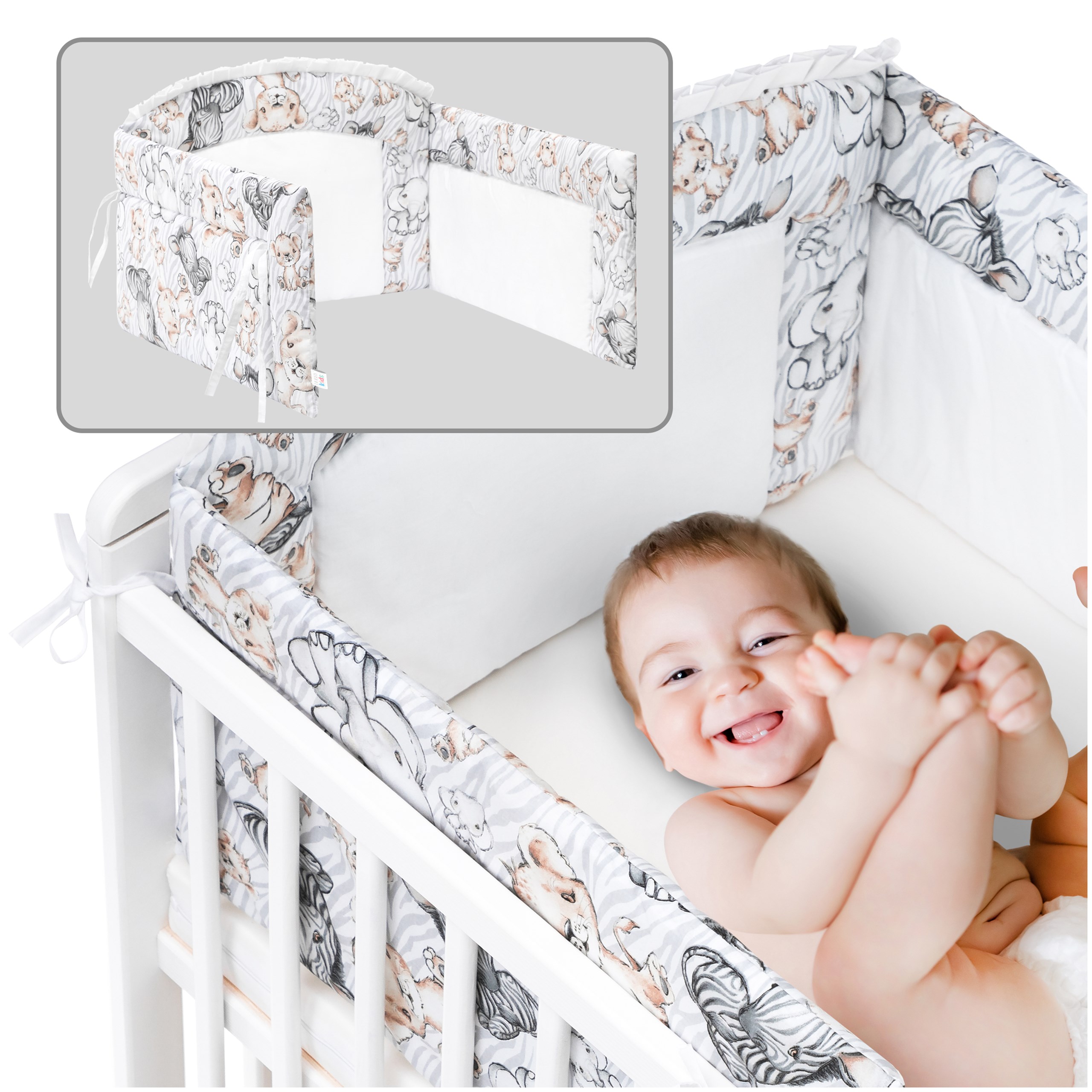 Наш защитник кровати является идеальным решением для родителей, которые хотят обеспечить своему ребенку полную безопасность и комфорт во время сна. Изготовлен из мягкого, высококачественного хлопка, который идеально подходит для нежной кожи младенца, минимизируя риск раздражения и аллергии . Интерьер защитника заполнен анти -аллергической непреодолимой тканью, которая ( поглощает каждый контакт с жесткими ступенями кроваткой , защищая вашего ребенка от случайных травм. Благодаря тщательно отобранным материалам и привлекательным дизайне, защитник идеально подходит для декора детской комнаты, создавая уютное и гармоничное пространство. Это продукт, который сочетает в себе как практичность, так и эстетику, придавая кроватке элегантный и приятный взгляд на глаза, заботясь о комфорте и защите ребенка