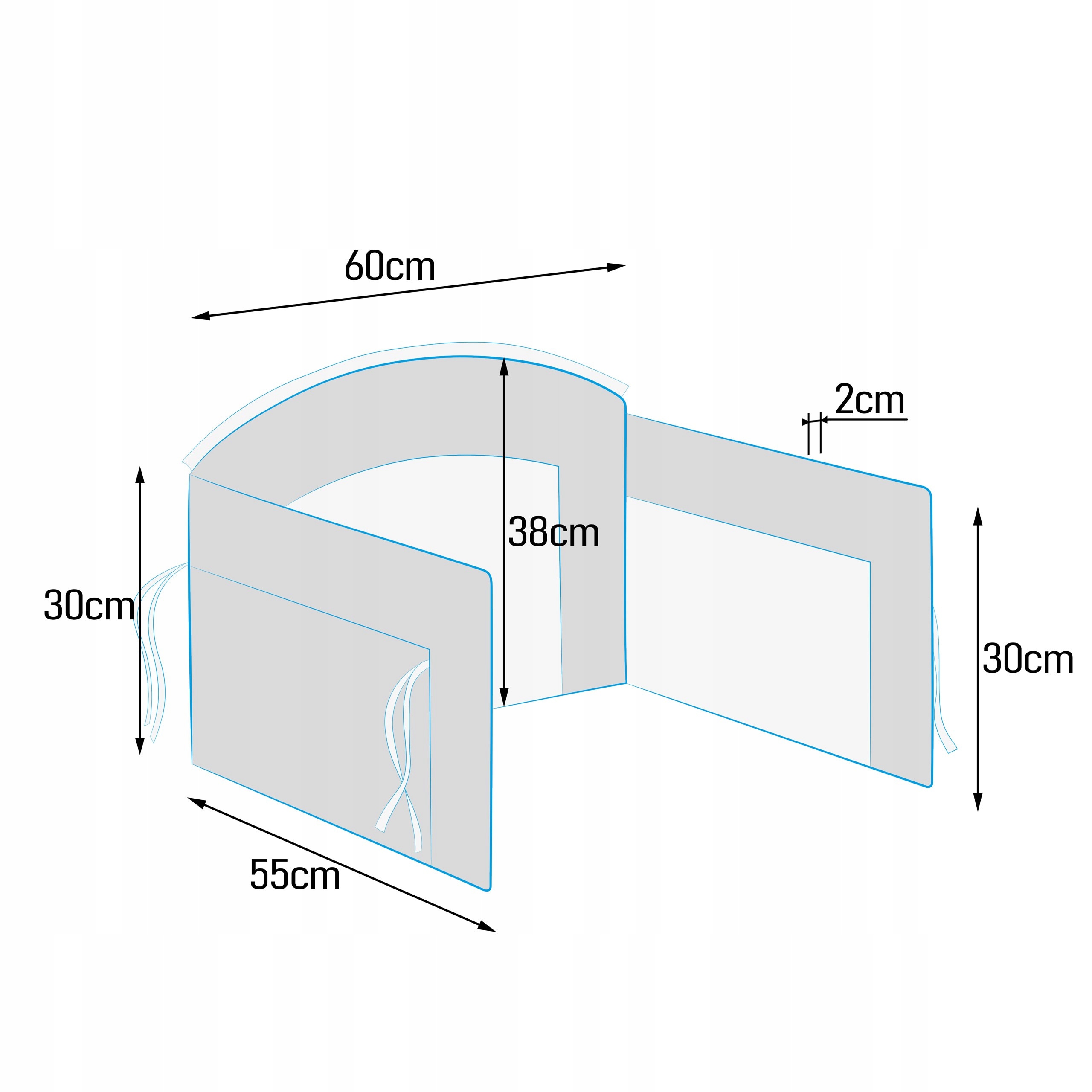 Cot Protector, доступный в этом предложении, имеет размер 170x38 см, что идеально соответствует стандартной детской кроватке с размерами матраса 120x60 см. Размеры нашего продукта подробно представлены на графике рядом с ним