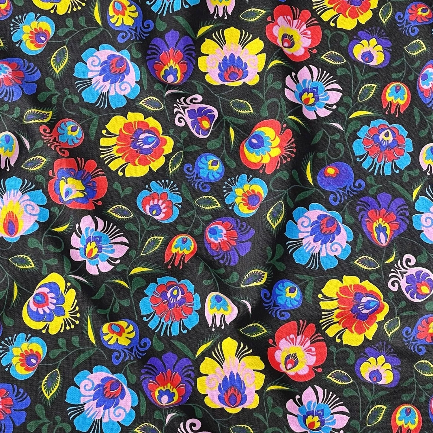 Ткань хлопчатобумажная - узор Ловицкая черная