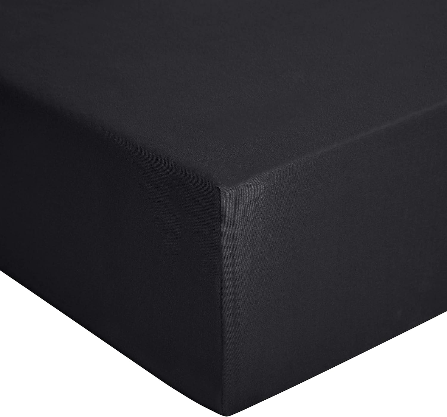 Простыня на резинке 80x190 см Amazon Basics Хлопковая черная простыня на резинке