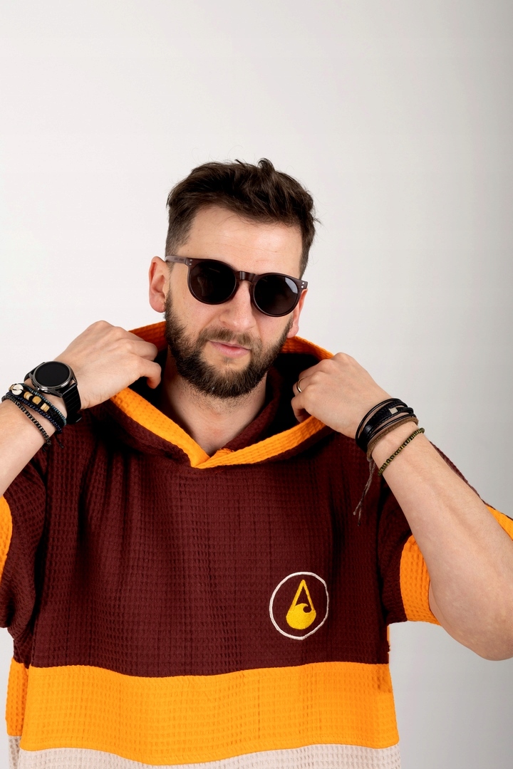 Дорожное пончо изготовлено из легких материалов, чтобы не утяжелять ваш багаж. Он весит всего 600 г! Его можно брать с собой куда угодно, поскольку он складывается до очень маленьких размеров. Изготовлен из 100% хлопка, приятен для кожи и обеспечивает тепло. Идеально, если вы хотите укрыться после ванны, защититься от ветра или просто переодеться.