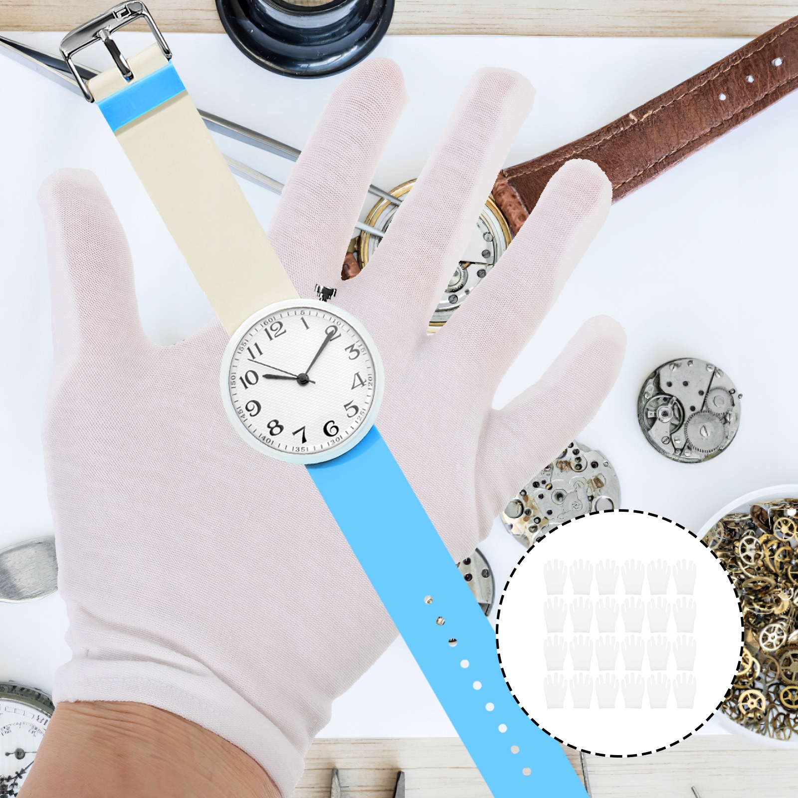 Достаточное количество белых хлопчатобумажных перчаток для ежедневного использования и замены.