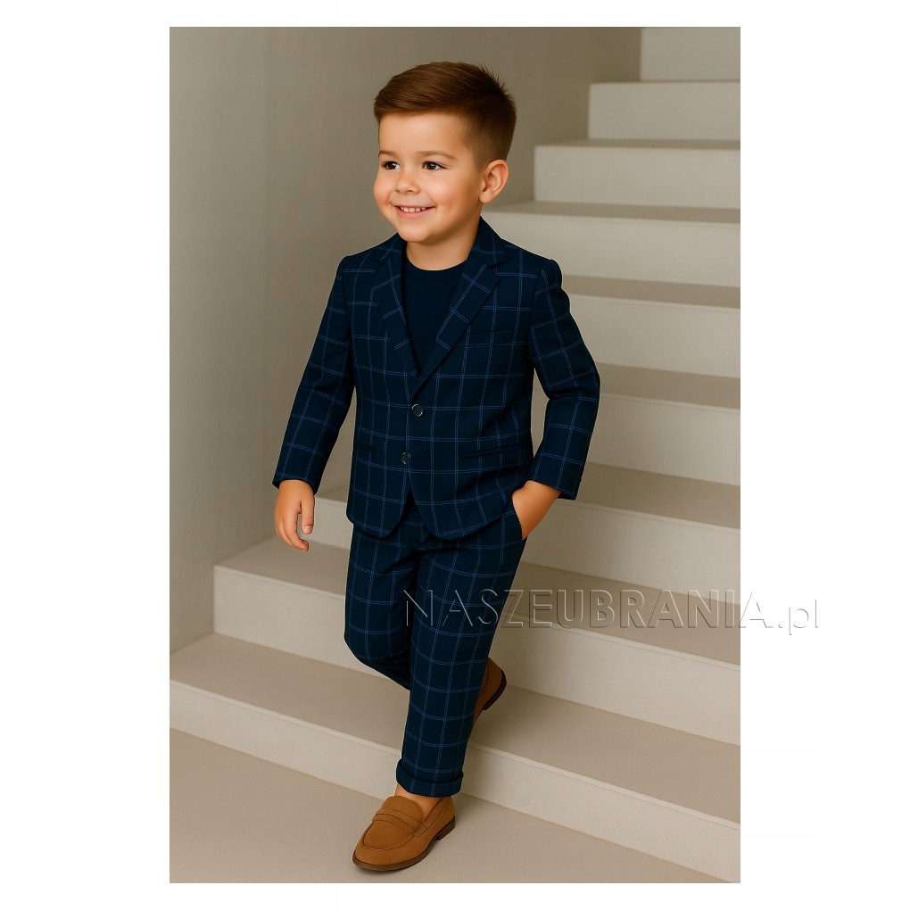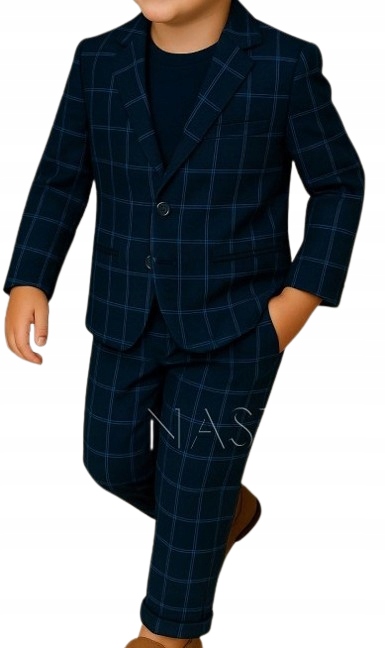 Элегантный костюм для мальчика с темно-синим рисунком в клетку – идеальное сочетание классического и современного стиля.