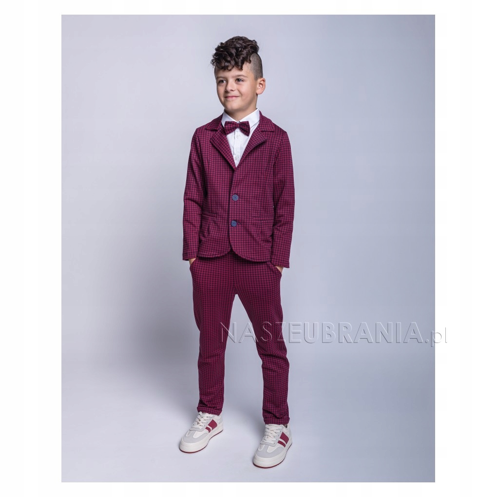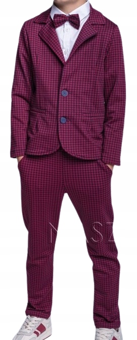 Элегантный костюм для мальчика в бордово-темно-синий узор в клетку – идеальное сочетание классического и современного стиля.