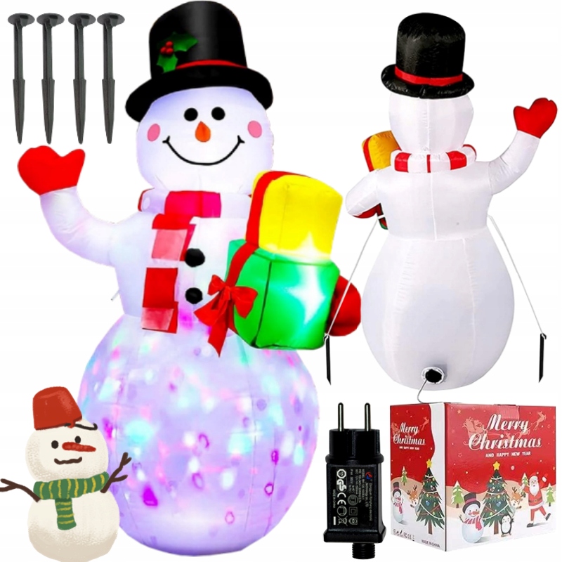 BAŁWAN DMUCHANY ŚWIECĄCY DUŻY ŚWIECĄCY OZDOBA DEKORACJA ŚWIĄTECZNA 1.5M