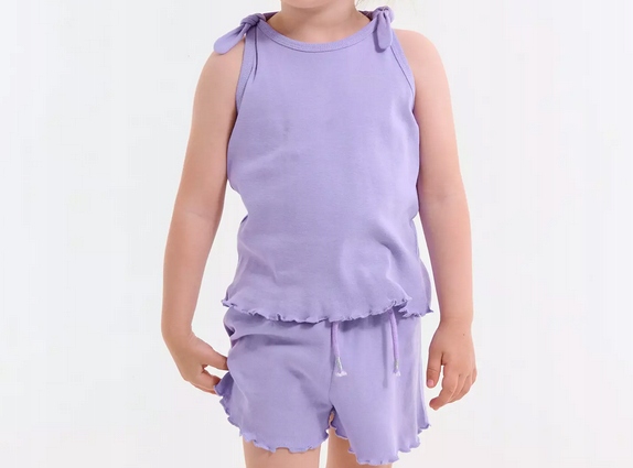 Фиолетовая майка для девочки – милый и девичий предмет гардероба, в котором каждая маленькая модница почувствует себя модно и комфортно. Топ имеет бретели, которые обеспечивают свободу движений и в то же время добавляют шарма и девичьего очарования. Этот фиолетовый топ из мягкого и приятного на ощупь материала станет прекрасным дополнением летнего образа девушки. Его можно носить с шортами, юбкой или леггинсами, создавая разнообразные и стильные комплекты. Фиолетовый цвет добавляет нотку нежности и девичьего очарования.
