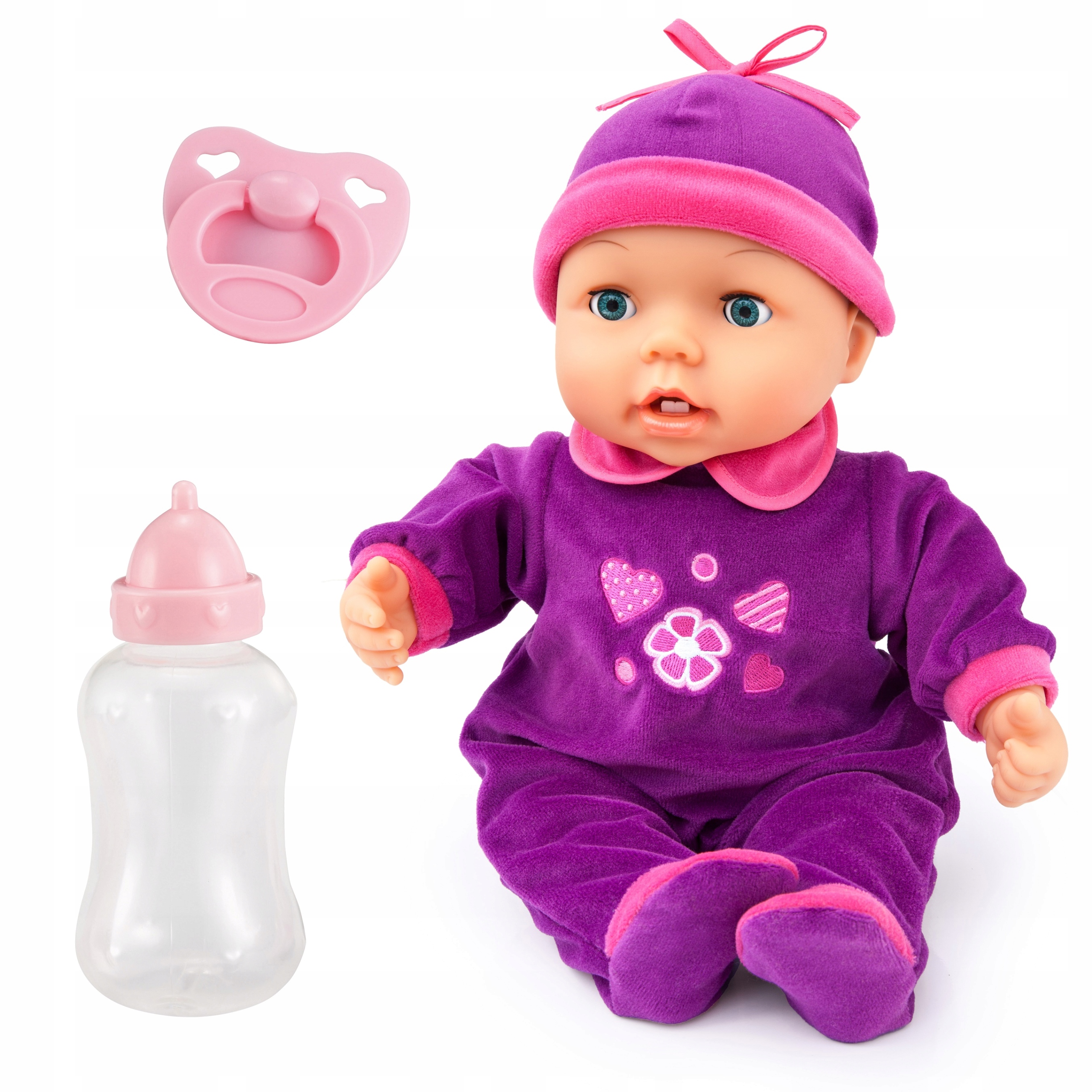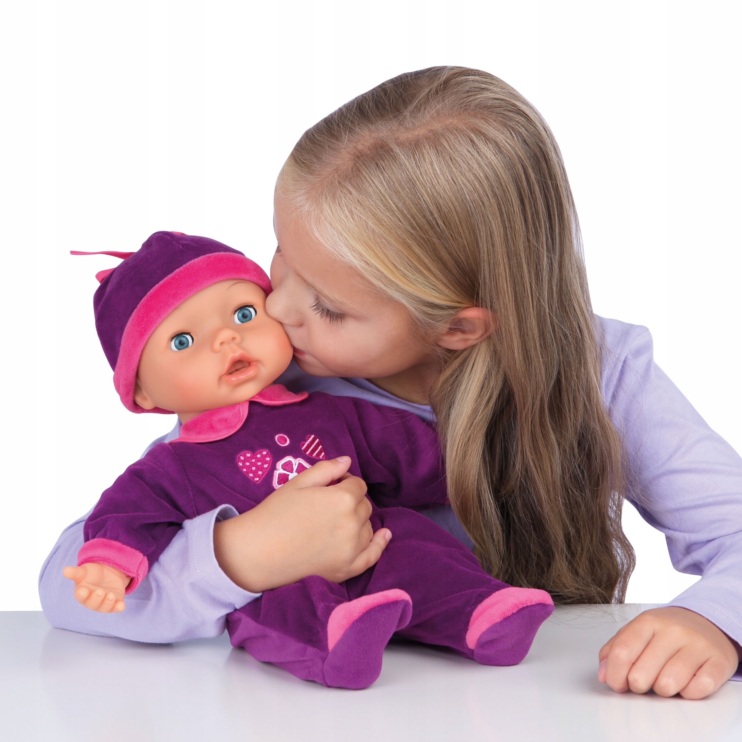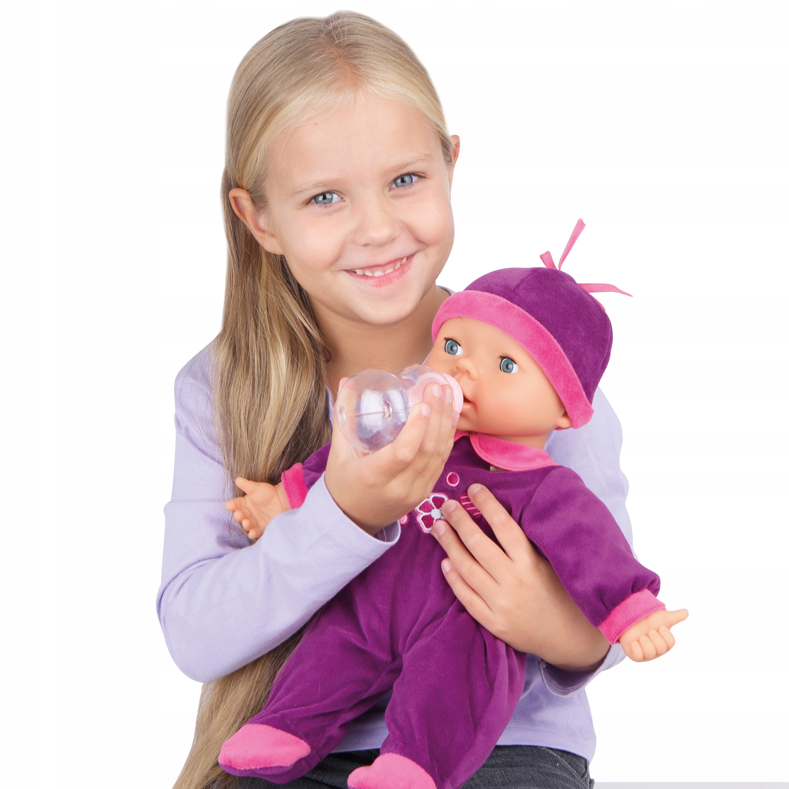Кукла издает 26 различных детских звуков, например, плач, хихиканье, имеет сонные глаза, то есть, когда ее кладут, она закрывает глаза.