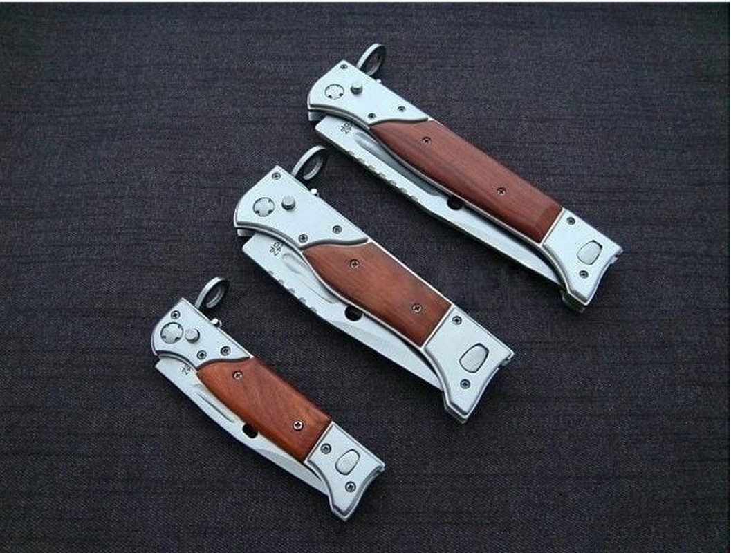 Байонеты тяжелые и очень твердые. Лезвия были изготовлены из стали num.420, стальные ручки с деревянной оболочкой. Штыки оснащены замками, чтобы предотвратить случайное открытие или закрытие. В конце ручки каждой модели существует механизм, который позволяет прикрепить штык для оружия. Штыки - это новые и острые. У всех есть крышки с креплением ремня. Набор включает в себя : Spring Bayonet 22 см , 27 см и 34 см .