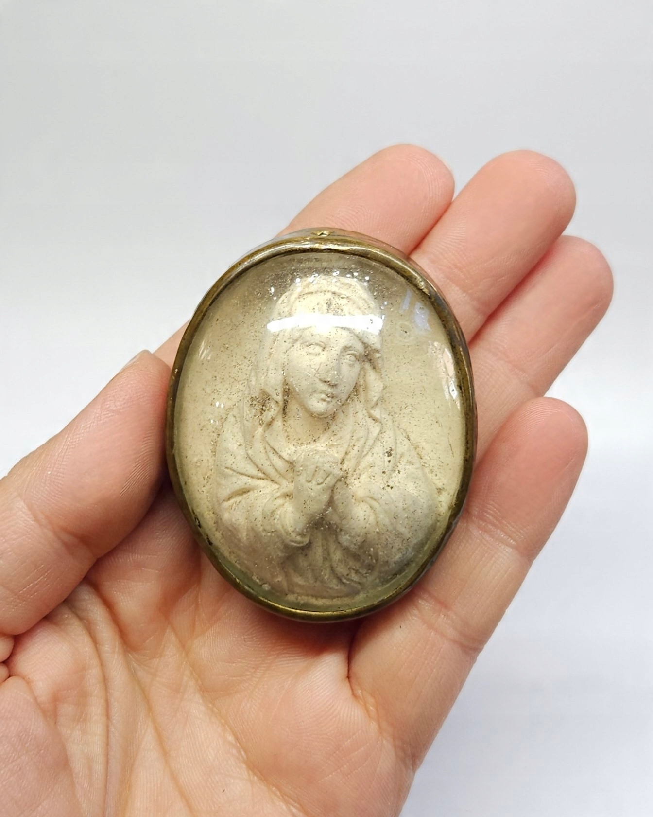 Бас -рельеф в рамке - выпуклое стекло, Франция 19 -го века.