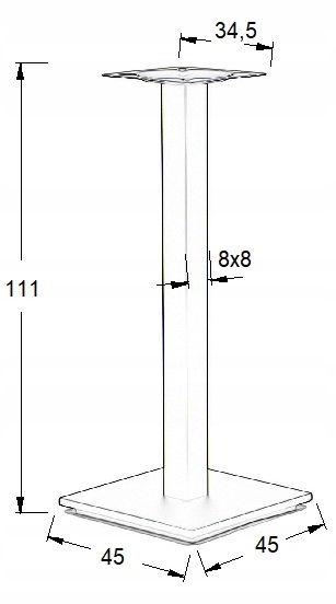 - Нога с размерами 8x8 см, изготовленной из стали с порошковым покрытием, толщины стенки 1,2 мм