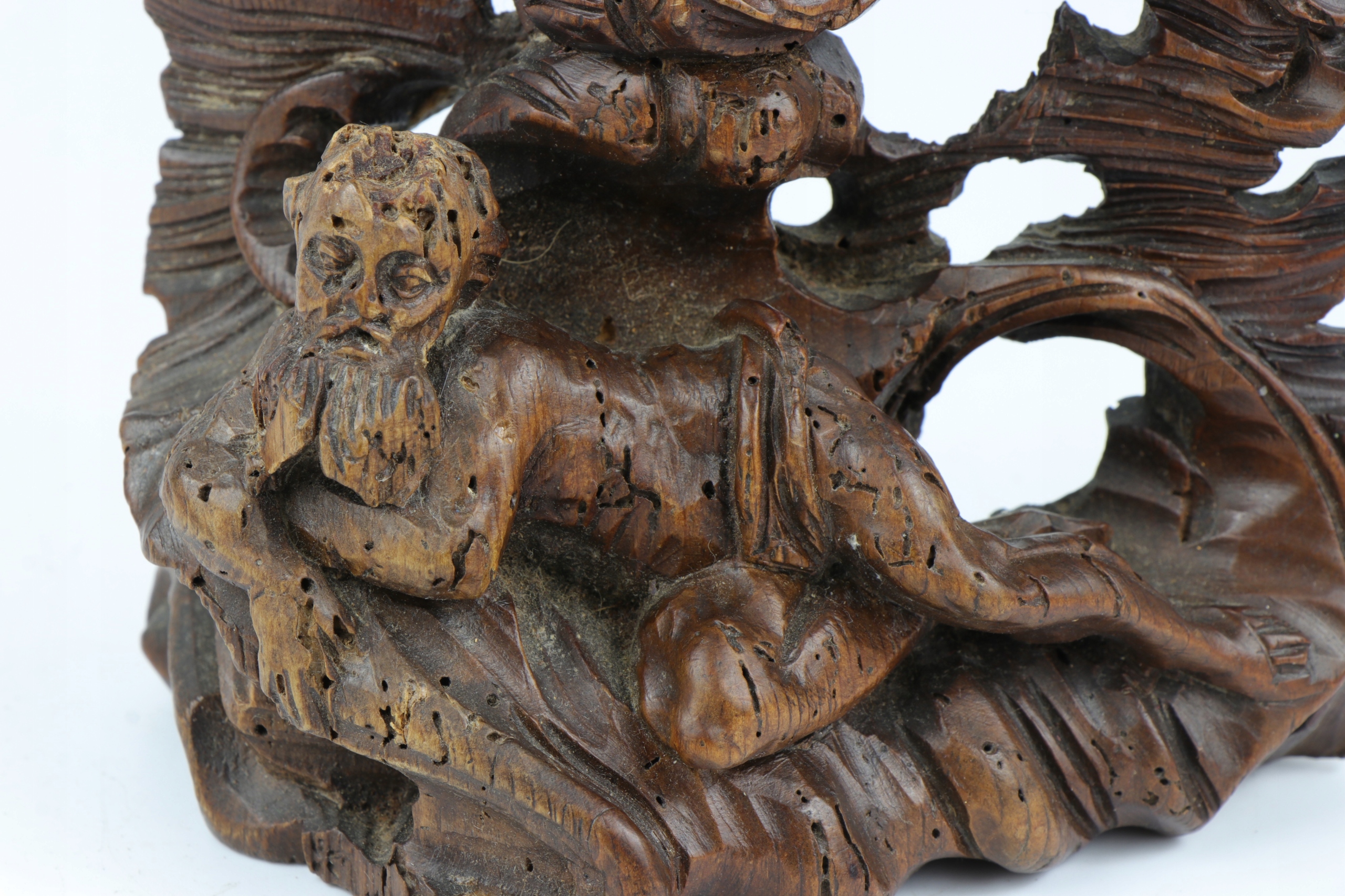 Как видно на фотографиях. Древесина сохранилась, но с многочисленными следами какого-то древоточца.