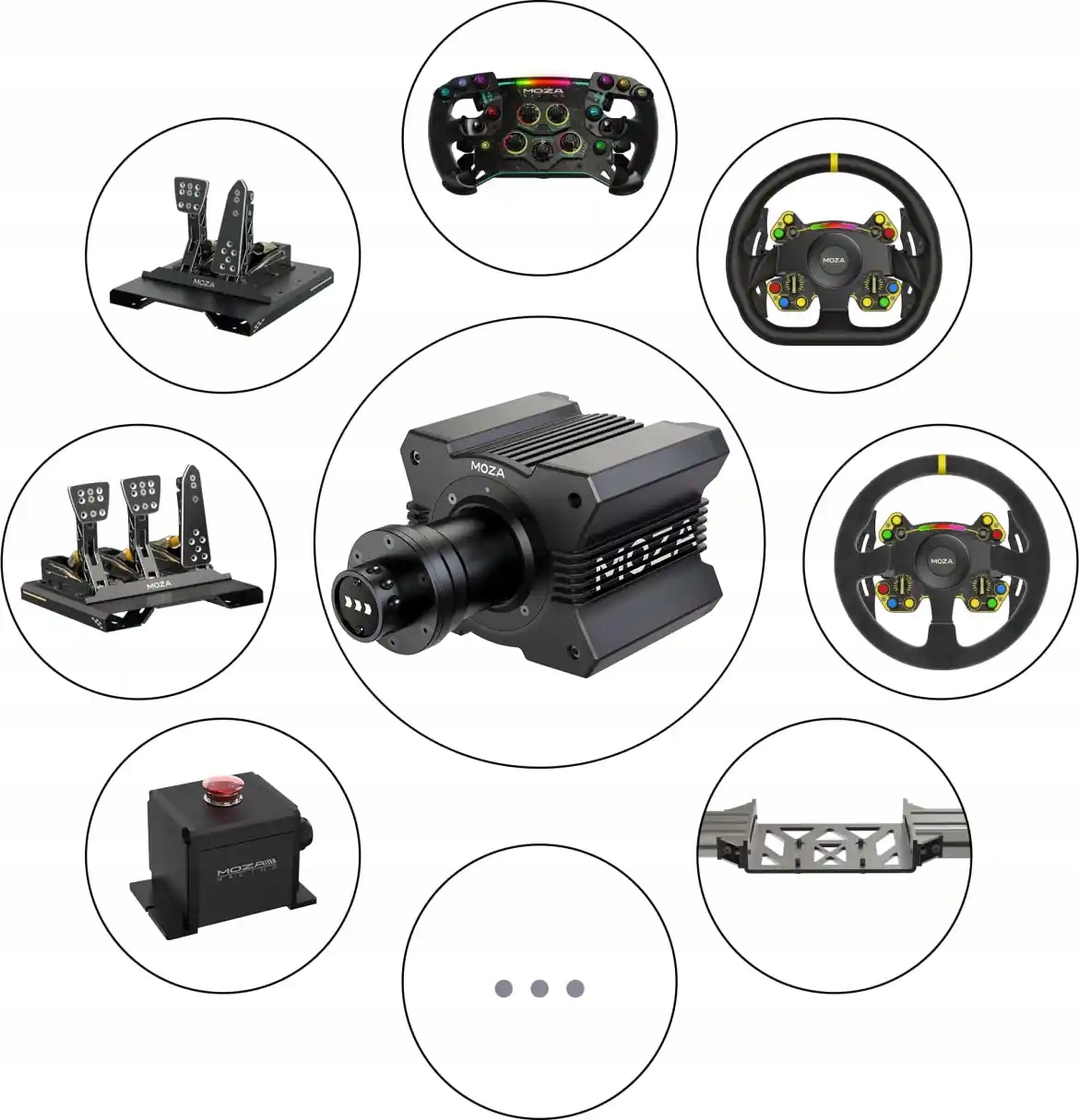 База R9 V2 совместима практически со всеми продуктами MOZA Racing, за исключением педалей SR-P Lite, которые предназначены только для базы R5. >< /п>