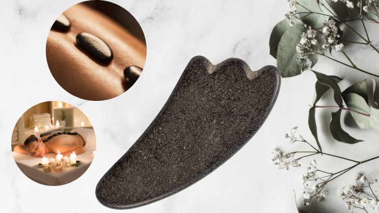 gua sha базальный камень для массажного рельефа с рельефным рельефом согревает набор из 2 штук h1>